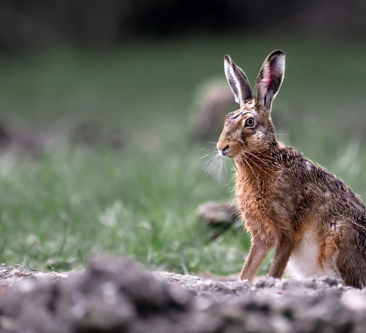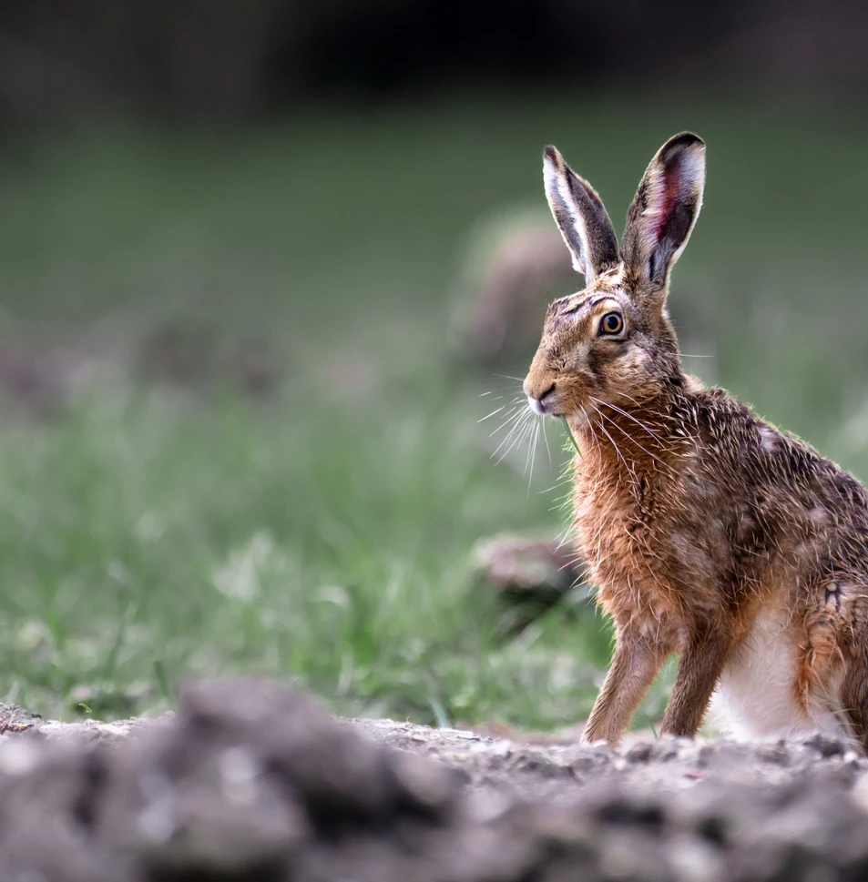 The hare remains faithful to its territory for the rest of its life. The hare is not mute. If you prick up your ears, you can hear a quiet “grumble” or - in case of danger - a piercing “wail”. Hares have a varied diet of herbs, grasses and crops. A hare can give birth up to four times a year. Newborn brown hares are nest fledglings, crawling and seeing from day one. Despite their fertility, human activities have led to habitat loss and declining numbers of brown hares.