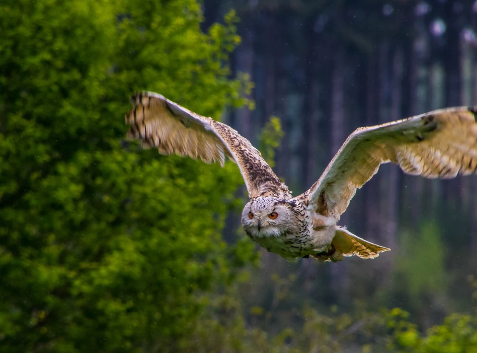 Die Jagdtechnik passt der Uhu perfekt auf die jeweilige Beute an: Säugetiere verfolgt er knapp über dem Boden, bei der Jagd auf Vögel fliegt er in Baumwipfelhöhe. Ja und selbst „zu Fuß“ ist der Uhu ein geschickter Jäger: Da verfolgt er auch schon mal eine flüchtende Maus mit großen Schritten. Geradezu legendär sind die Sinnesorgane des Uhus. Seine Sehkraft übertrifft die des Menschen um das Fünfzig- bis Hundertfache. Federkränze um die Augen bündeln und verstärken Geräusche wie das Rascheln einer Maus, bevor sie an die Ohren weitergeleitet werden. Durch asymmetrisch angeordnete Ohröffnungen unter dem Gefieder erreichen Geräusche die Ohren nicht gleichzeitig, sondern mit einem minimalen Zeitunterschied. Dies ermöglicht es dem Waldkauz, Beute auch im Dunkeln präzise zu orten.