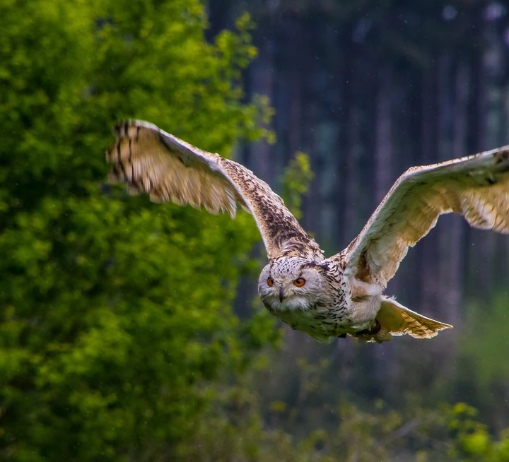 The eagle owl adapts its hunting technique perfectly to its prey: It pursues mammals just above the ground, when hunting birds it flies at treetop height. Yes, and even ‘on foot’, the eagle owl is a skilful hunter: it can pursue a fleeing mouse with long strides. The eagle owl's sensory organs are legendary. Its eyesight exceeds that of humans by a factor of fifty to a hundred. Wreaths of feathers around the eyes concentrate and amplify sounds such as the rustling of a mouse before they are passed on to the ears. Due to asymmetrically arranged ear openings under the feathers, sounds do not reach the ears at the same time, but with a minimal time difference. This enables the tawny owl to precisely locate prey even in the dark.