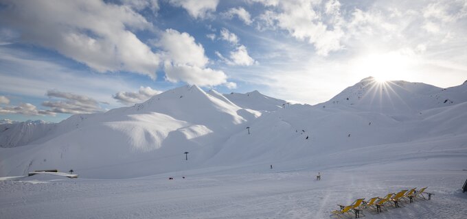 In den frühen Morgenstunden geht es mit dem Masner Express hinauf zur Hexenseehütte. Dort erwartet dich ein atemberaubender Weitblick auf das Tiroler Gipfelmeer. Wenn die Sonnenstrahlen die Gipfel langsam in warmes Licht tauchen, spürst du pure Magie. Dazu ein reichhaltiges Bergfrühstück – Genuss und Panorama in einem. Gestärkt kannst du direkt die nahezu unbefahrenen Pisten erobern oder entspannt mit dem Masner Express zurück zum Lazid fahren und die Gondel ins Tal nehmen.