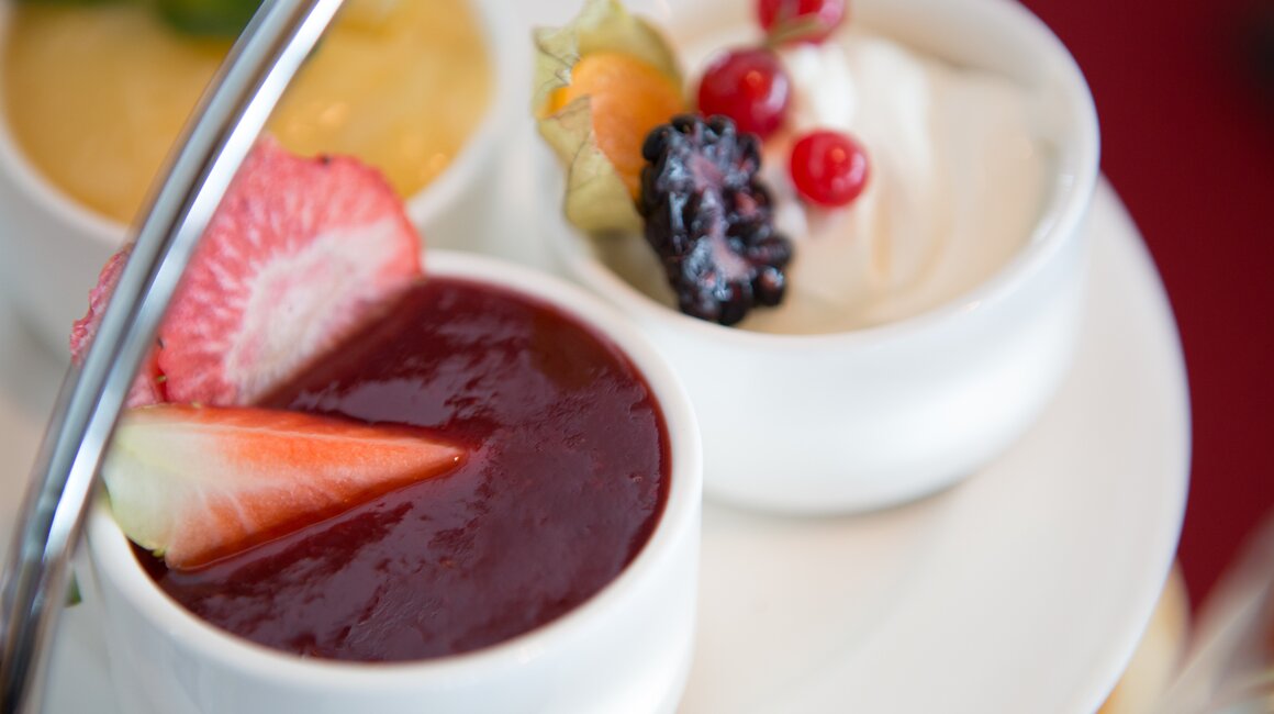 Für Naschkatzen: Consommé, Canapés, Petit Fours und hausgemachte Pralinen begleiten Kaffee, Tee und Fruchtsäfte. Ein Fest für die Sinne!