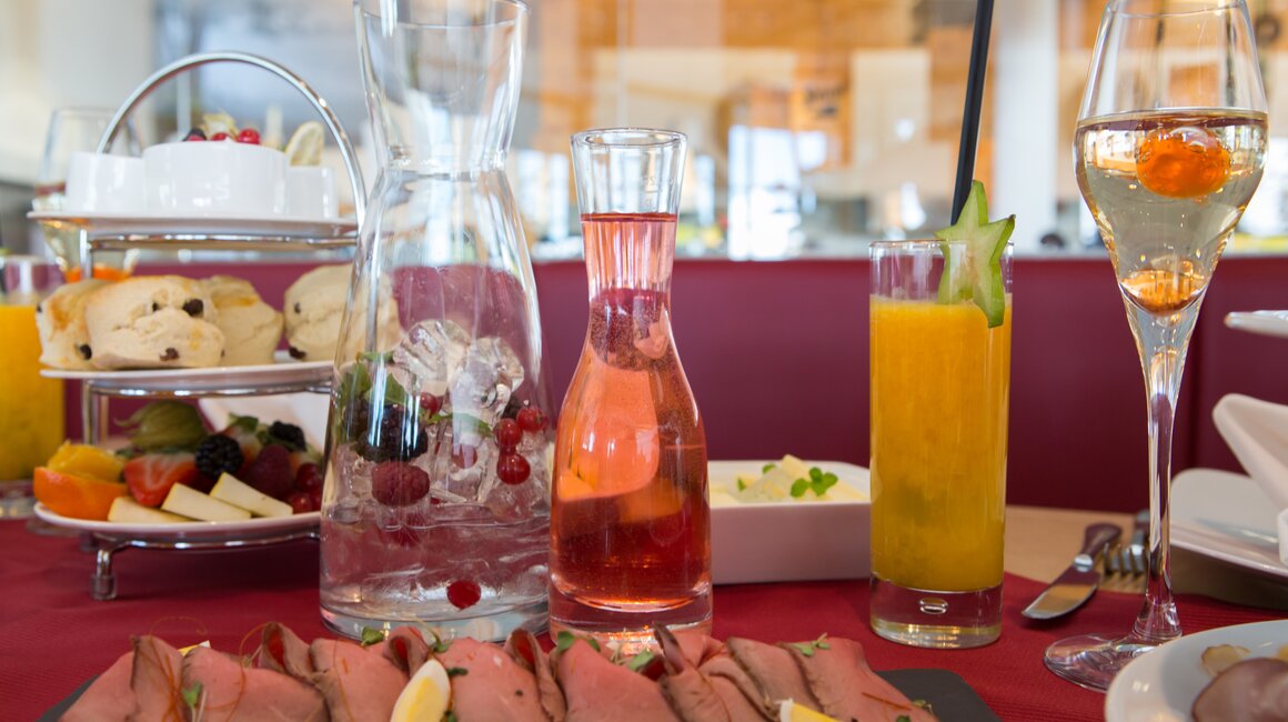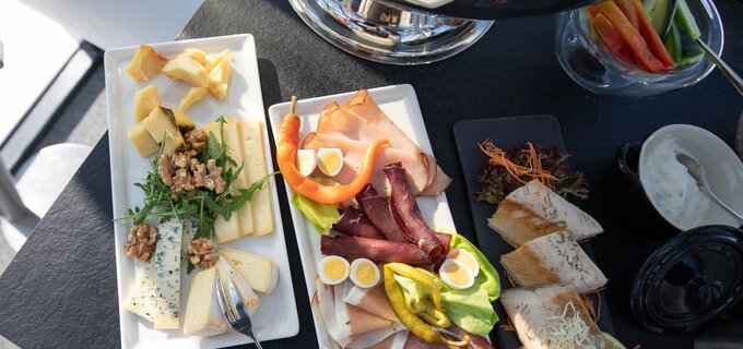Gönn dir eine luxuriöse Mittagspause mit kalten Vorspeisen, Suppe, warmen Hauptgerichten und süßen Köstlichkeiten aus der hauseigenen Konditorei. Ein Aperitif stimmt dich auf die Genussmomente ein.
