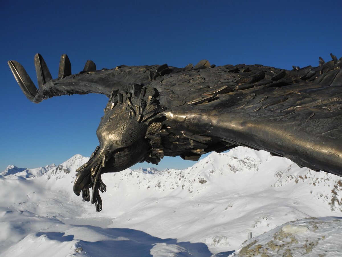 Auf der Aussichtsplattform am Masnerkopf, dem höchsten Punkt im Skigebiet, empfängt Sie eine imposante Bartgeier-Steinskulptur vom Serfauser Bildhauer und Künstler Walter File. Panoramablick - mit und ohne Erlebnisfernrohr - sowie WLAN inklusive.