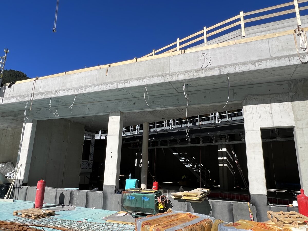 Apropos Check IN: Auch hier laufen die Arbeiten planmäßig. Die Montage der Lüftungsanlage wird derzeit durchgeführt, die Verlegung des Estrichs befindet sich in der Endphase. Sämtliche Zu- bzw. Ableitungen (Strom, Wasser, Kanal) werden aktuell verlegt – aus diesem Grund musste die Fußgängerbrücke Richtung Sunliner frühzeitig abmontiert werden. Diese diente als direkte Verbindung für die Wanderer (entsprechende Umleitungen sind eingerichtet, um den Sunliner nach wie vor problemlos zu erreichen). Das neue Skidepot wird mit Aufzügen und Rolltreppen selbstverständlich barrierefrei zugänglich sein, diese Vorrichtungen sind bereits alle installiert.
