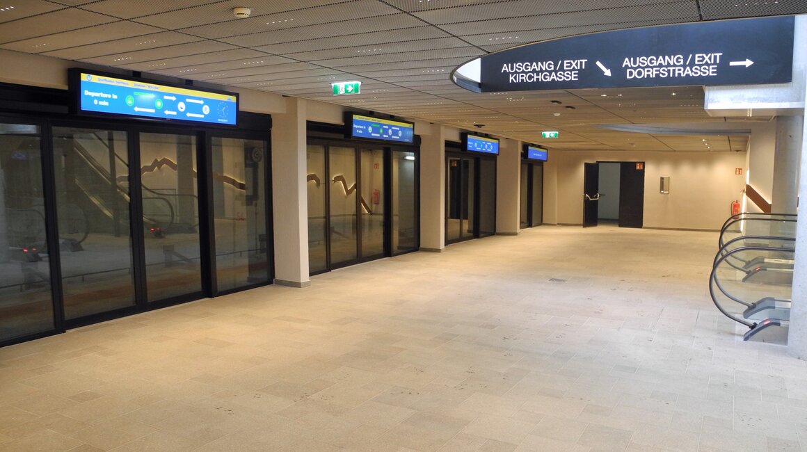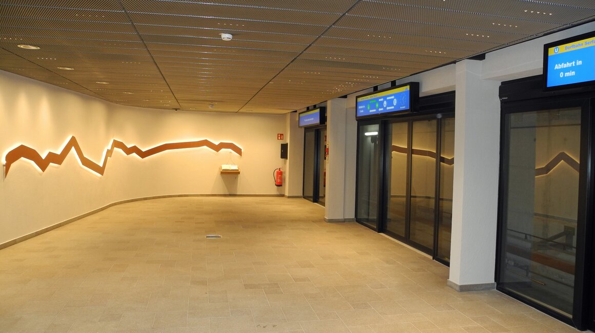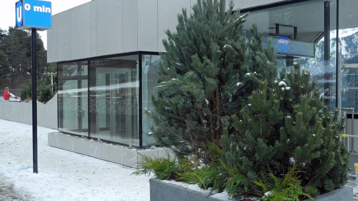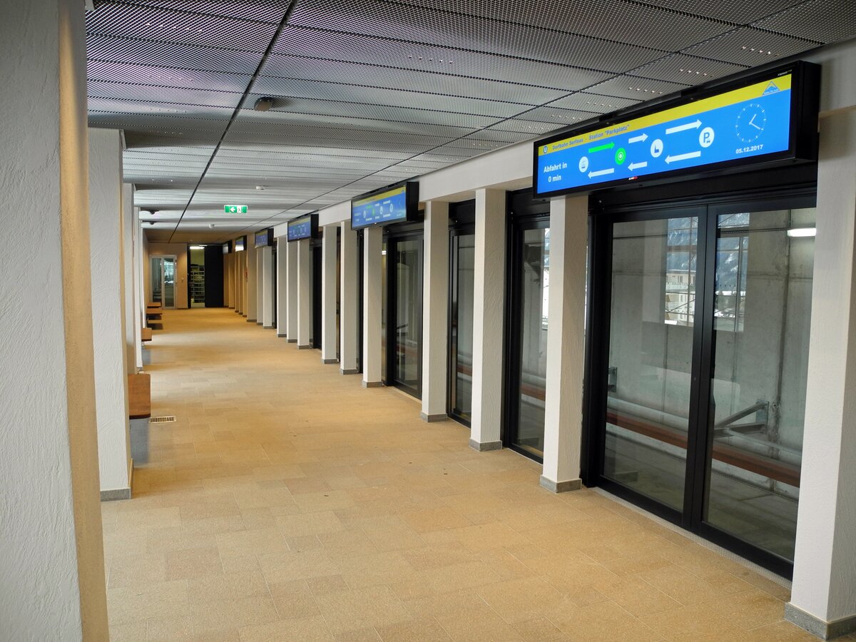 Schon am Ortseingang ist unschwer zu erkennen, dass die erste Phase der Erneuerung abgeschlossen ist. Von der Dorfbahnstraße aus ist die Station Parkplatz ganz bequem über Rolltreppen bzw. einen Aufzug zu erreichen. Der Zugang vom Parkplatz zur Station ist nach wie vor derselbe. Schon beim Betreten der „neuen“ Station wird man von der Helligkeit und der offenen Bauweise positiv überrascht. Und was ist das? Man sieht jetzt sogar den Tunnel, in dem sich die Bahn fortbewegt – großzügige Fensterfronten ermöglichen diesen neuen Einblick. Über den Türen sind große Bildschirme angebracht, auf denen man abwechselnd den aktuellen Bahnstatus, sowie Wetterinfos, aber auch Livebilder aus dem Skigebiet verfolgen kann. Diese Bildschirme sind übrigens in allen neuen Stationen installiert.