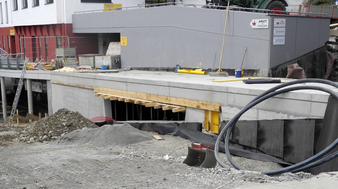Gleich am Ortseingang ist unschwer zu erkennen, dass an der U-Bahn Serfaus gebaut wird – ein großer Kran deutet die Baustelle unterhalb der Dorfbahnstrasse an. Aber auch entlang der Dorfeinfahrt wird gegraben – Kanal, Wasser- und Mittelspannungsleitungen müssen nämlich in diesem Bereich aufgrund der Umbauarbeiten verlegt werden. Die Aushubarbeiten für den Zubau auf der Südseite sind bereits abgeschlossen – so wie auch die Betonschneidearbeiten zur Erweiterung der Technikräume und der Lüftung. Der westliche Teil der Bodenplatte, sowie zwei Wandsektionen sind fertig betoniert.