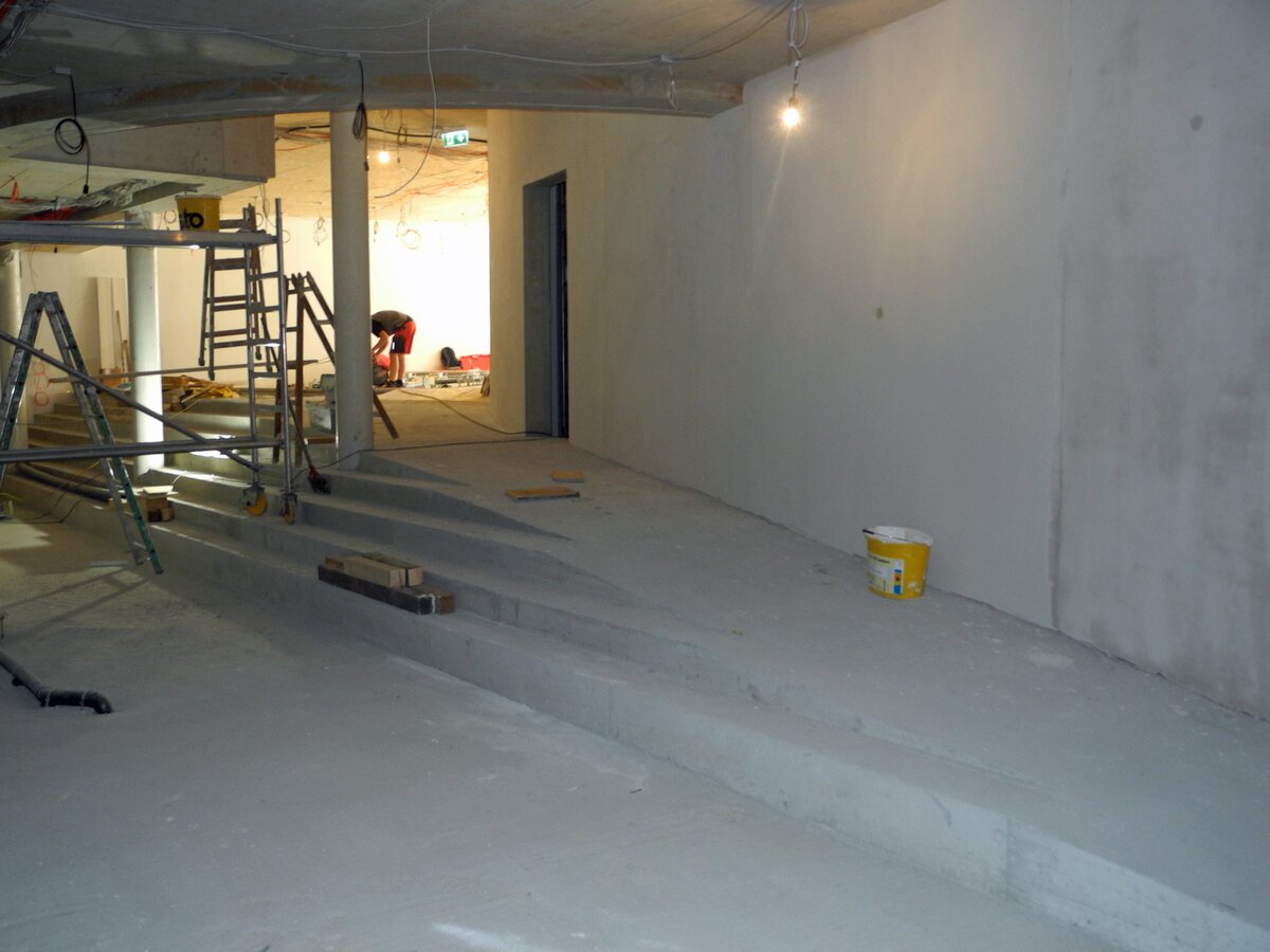 Aktuell werden in der Station Zentrum bereits Malerarbeiten durchgeführt. Alle elektrischen Rohinstallationen sind bereits mehr oder weniger abgeschlossen. Demnächst wird der Estrich verlegt und schon jetzt stechen einem vor allem die Größe der neuen Station sowie der lichtdurchflutete Wartebereich ins Auge. Auch der barrierefreie und kinderwagentaugliche Zugang ist nicht mehr mit der Treppe der alten Station zu vergleichen.
