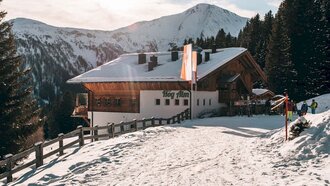 Wir beide auf knapp 2.600 Metern Seehöhe inmitten der verschneiten Bergwelt und dazu ein Sonnenaufgang vom Feinsten – was für ein magisches Erlebnis! Zugegeben: Unserer inneren Uhr gefällt das frühe Aufstehen so gar nicht. Und doch können wir allen NACHTEULEN nur wärmstens dazu raten, sich einen Ruck zu geben und ein Eventticket für das sogenannten Sunrise Hexensee zu buchen. Mit dem MASNER EXPRESS (einem umgebauten Pistenbully) geht es noch im Dunklen in die Höhe. Spätestens wenn die abenteuerliche Fahrt losgeht, ist jeder hellwach. So viel können wir schon einmal versprechen. Nach einer Stunde heißt es dann endlich: Herzlich Willkommen auf der Hexenseehütte!