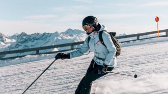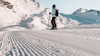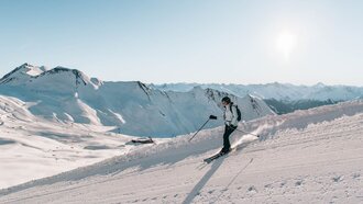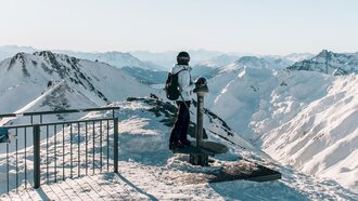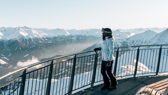 Besonders angetan hat es uns der Ausblick vom Gipfel des MASNERKOPFS. Auf knapp 3.000 Metern Seehöhe gibt es sogar eine kleine Aussichtsplattform. Auch der Nachbargipfel, der PEZID, weiß zu beeindrucken: Immer wieder lassen wir den Blick von links nach rechts über die verschneite Gipfelwelt schweifen und können unseren Augen kaum trauen angesichts dieser endlosen Naturschönheit. Wer also – so wie wir – auf der Suche nach Skipisten mit gigantischem Panorama ist, der wird es in Serfaus-Fiss-Ladis lieben.