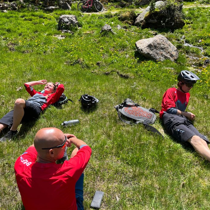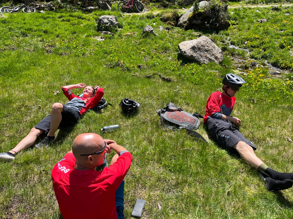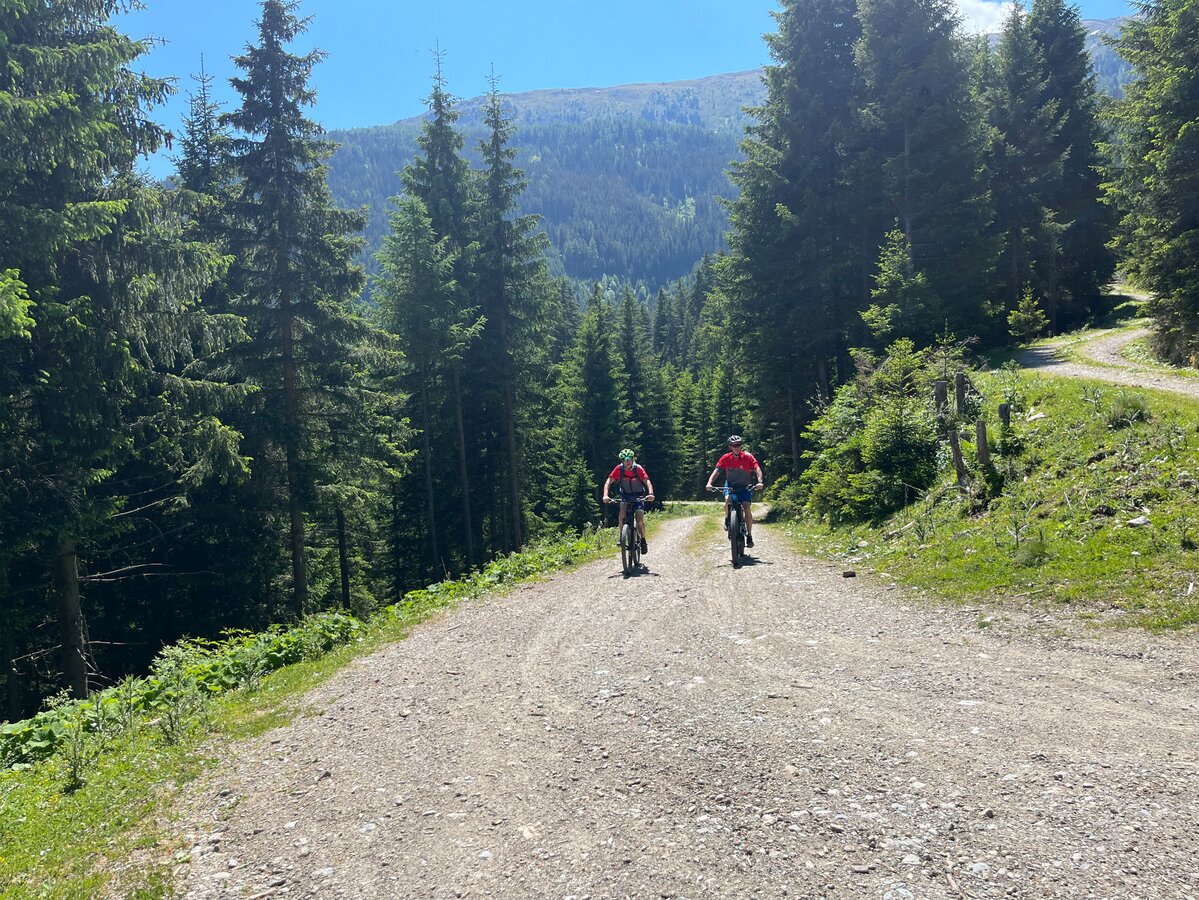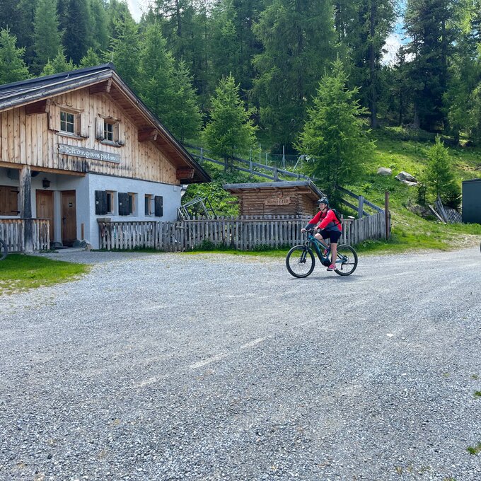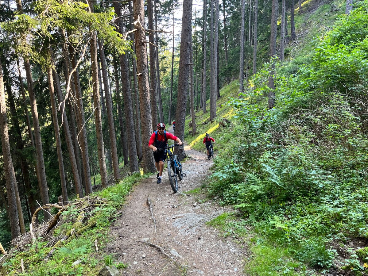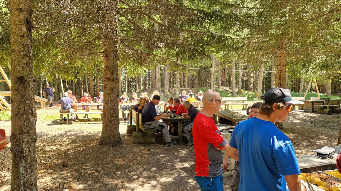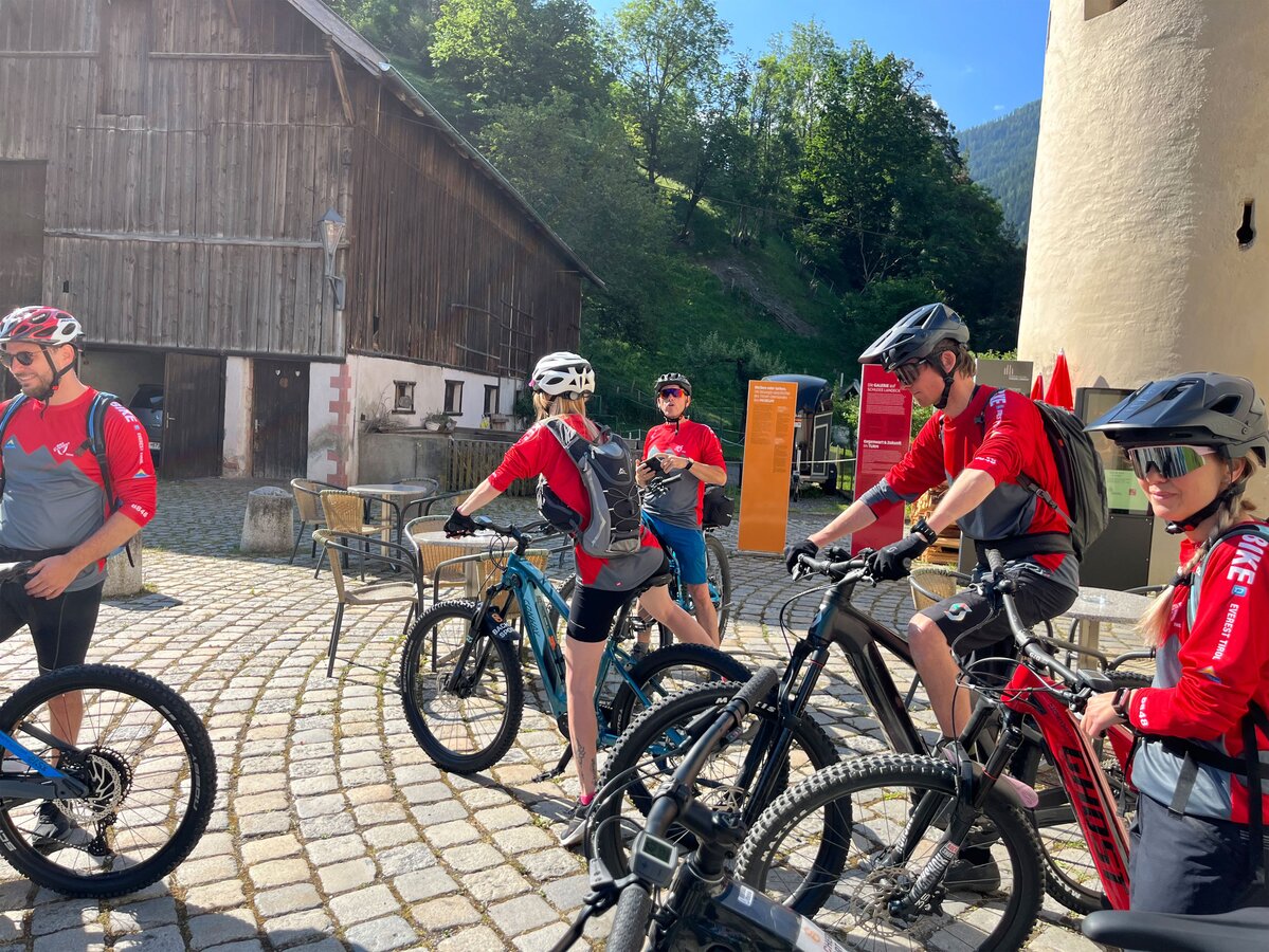 Die größte Hürde hatten wir nun geschafft und rauschten mit dem Fahrtwind im Gesicht talwärts. Nach einer Weile erreichte uns der verlockende Duft von gebratenen Würsteln, der unsere Vorfreude auf eine köstliche Stärkung noch mehr ankurbelte. Am ruhigen Grillplatz in Rabuschl wurden wir bereits von unseren geschätzten Kollegen erwartet. Mit großer Herzlichkeit und Freude verwöhnten sie uns mit leckeren Grillspeisen und erfrischenden Getränken. Es war eine wahrhaft genussvolle Zusammenkunft, bei der wir uns von der Anstrengung der Fahrt erholen und die Gemeinschaft mit unseren Kollegen in vollen Zügen genießen konnten. Voller Energie brachen wir Richtung Ziel der Etappe auf. Vom Rabuschl aus folgten wir dem breiten Weg in Richtung Serfaus.