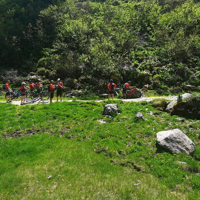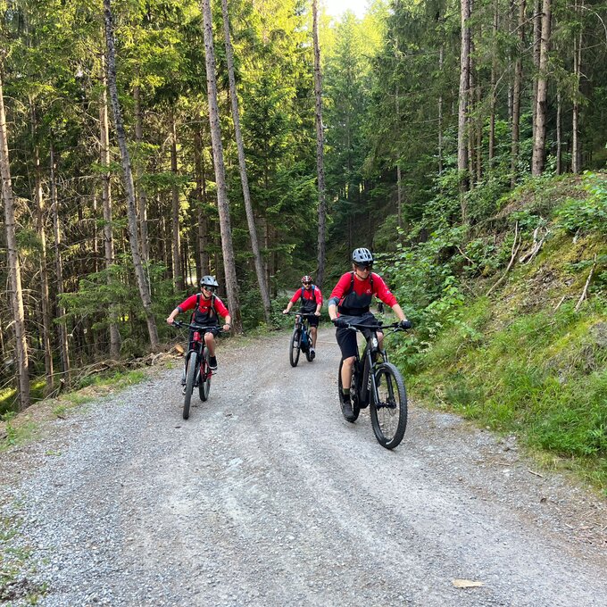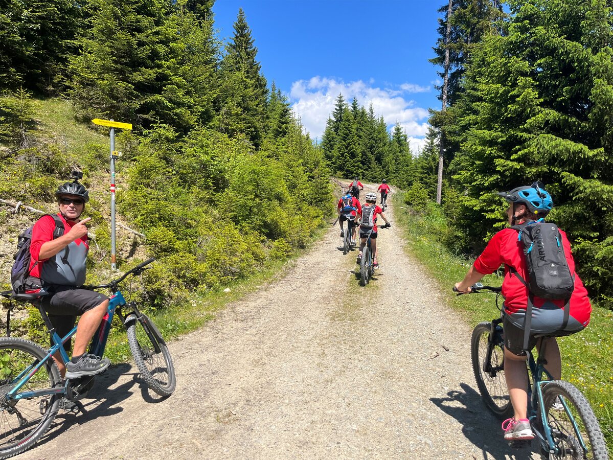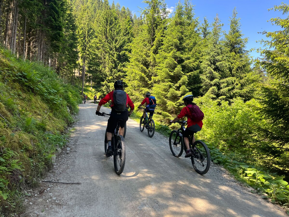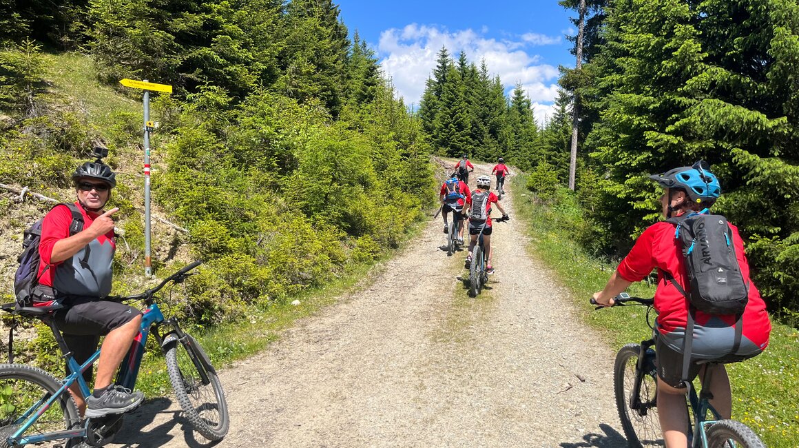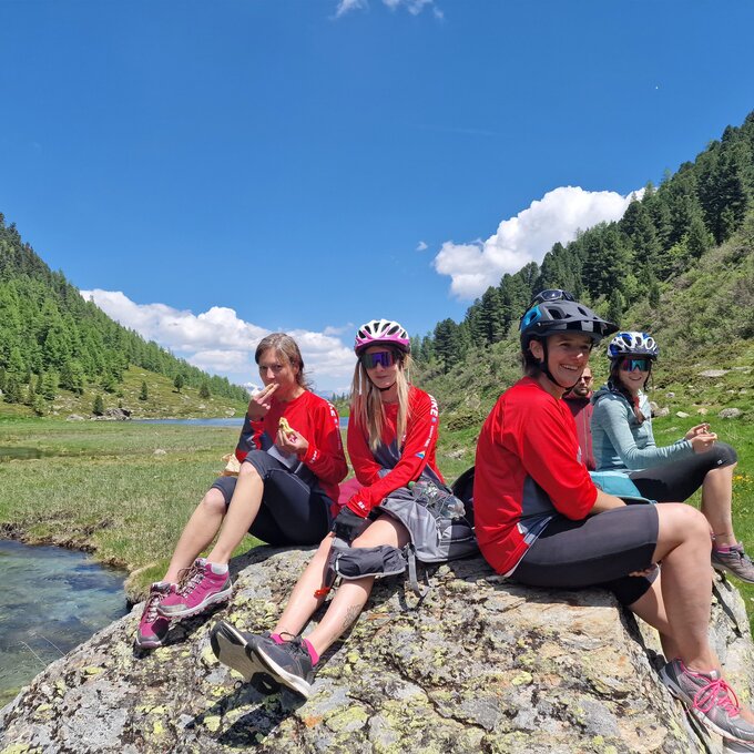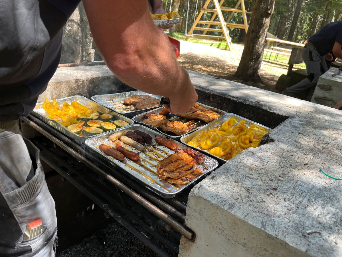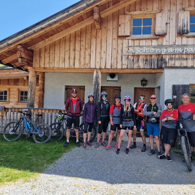 Die größte Hürde hatten wir nun geschafft und rauschten mit dem Fahrtwind im Gesicht talwärts. Nach einer Weile erreichte uns der verlockende Duft von gebratenen Würsteln, der unsere Vorfreude auf eine köstliche Stärkung noch mehr ankurbelte. Am ruhigen Grillplatz in Rabuschl wurden wir bereits von unseren geschätzten Kollegen erwartet. Mit großer Herzlichkeit und Freude verwöhnten sie uns mit leckeren Grillspeisen und erfrischenden Getränken. Es war eine wahrhaft genussvolle Zusammenkunft, bei der wir uns von der Anstrengung der Fahrt erholen und die Gemeinschaft mit unseren Kollegen in vollen Zügen genießen konnten. Voller Energie brachen wir Richtung Ziel der Etappe auf. Vom Rabuschl aus folgten wir dem breiten Weg in Richtung Serfaus.