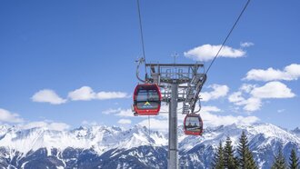 Nach dem leckeren Frühstück schmeißen wir uns in unsere Pistenoutfits und spazieren gemütlich zur Talstation der Komperdellbahn. Hier holen wir unsere Ausrüstung aus dem Depot und nehmen die nächste Gondel hinauf zur Bergstation. Wir blicken während der Fahrt über die Landschaft und können es kaum erwarten, die eine oder andere Piste hinunter zu sausen. Blauer Himmel, fast keine Wolken und jede Menge Sonne - geht es eigentlich noch besser? Apropos Sonne - zum Glück haben wir eine kleine Tube Sonnencreme im Rucksack. Damit sollten wir heute wohl nicht allzu sparsam umgehen.