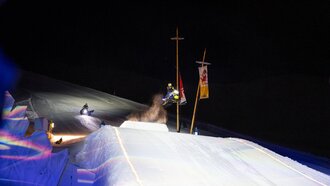 Gegen 20:30 Uhr machen wir uns wieder auf den Weg zur Bahn und fahren erneuert zur Bergstation der Komperdellbahn. Immer mittwochs findet hier in den Bergen nämlich die beliebte Adventure Night statt. Geduldig warten wir auf den Start der Show und sind gespannt, was den Gästen hier geboten wird. Pünktlich um 21 Uhr geht es los und durch Lichter und Projektionen verwandelt sich die Kulisse plötzlich in eine märchenhafte und farbenprächtige Traumwelt. Zahlreiche Artisten und Akrobaten sowie die Skischule Serfaus bieten nun eine beeindruckende Show mit tollen Stunts und Kostümen. Eine super gelungene Abendshow, für welche wir gerne Beifall klatschen. Nach der Show schnappen wir uns beide einen Schlitten und düsen die 4 km lange und gut beleuchtete Rodelbahn hinunter nach Serfaus. Wow, was für ein grandioser Tagesabschluss!