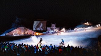 Bevor die Show perfekt sitzt und Ende Dezember mit dem Auftaktevent die neue Nightflow-Saison eingeläutet werden kann, muss natürlich viel geübt werden: Die Teams – von den Skilehrern bis zu den Skiglidern oder Mountainbikern - treffen sich einzeln, um ihre Choreografien zu trainieren, dann gibt es drei gemeinsame Probedurchgänge im Dezember. Dazu kommt die Arbeit des Technikteams, die sich schon ab Herbst und vor den ersten Shows dann fast täglich treffen, um Licht, Musik, Feuerwerk und Drohneneinsätze perfekt abzustimmen. „Kurz vor der ersten Show ist mir dann noch eingefallen, dass ich gerne eine Kiss Cam wie bei Sportevents hätte“, lacht Daniel. „Da habe ich mir selber ein bisschen Stress gemacht, aber dieses Extra kommt gut an.“ Die positive Resonanz aus dem Publikum ist es auch, was Daniel Frizzi und die Nightflow-Mannschaft jede Woche aufs Neue motiviert. „Ich stehe bei jeder Show im Publikum und man merkt einfach, dass die Zuschauer eine Riesen-Gaudi haben“, so Daniel.