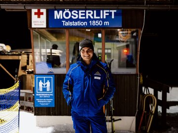 Es ist kurz nach acht Uhr abends, in wenigen Minuten fällt der Startschuss zum wöchentlichen Nightflow, der Skishow in Fiss. Trotzdem bleibt Daniel Frizzi ganz entspannt. „Mittlerweile sind wir ein eingespieltes Team“, lacht er. „Vor der allerersten Show in dieser Saison war das ganz anders“, gibt er zu. „Da war ich – und eigentlich wir alle – sehr nervös. Die allererste Probe im Dezember war grauenvoll, nichts hat geklappt, die erste Generalprobe lief dann super. Da haben wir die finale, zweite Generalprobe kurzerhand abgesagt, um unser Glück nicht überzustrapazieren.“ Der 28-Jährige behält bei der Skishow den Überblick – beruflich und mit voller Begeisterung. „Der Nightflow wird von der Skischule Fiss-Ladis und den Bergbahnen Fiss-Ladis gemeinsam organisiert und veranstaltet. Ich bin seitens der Bergbahnen verantwortlich“, sagt er. Jede Saison hat die Skishow ein neues Motto. „Rock the Snow“ war es im Winter 2022/2023, für diese Saison und die neue Show mit dem Titel „The Eagle Returns“ wurde eifrig geplant. „Wir besprechen eigentlich schon im Winter während der Shows, was wir nächstes Jahr zeigen möchten“, sagt Daniel.