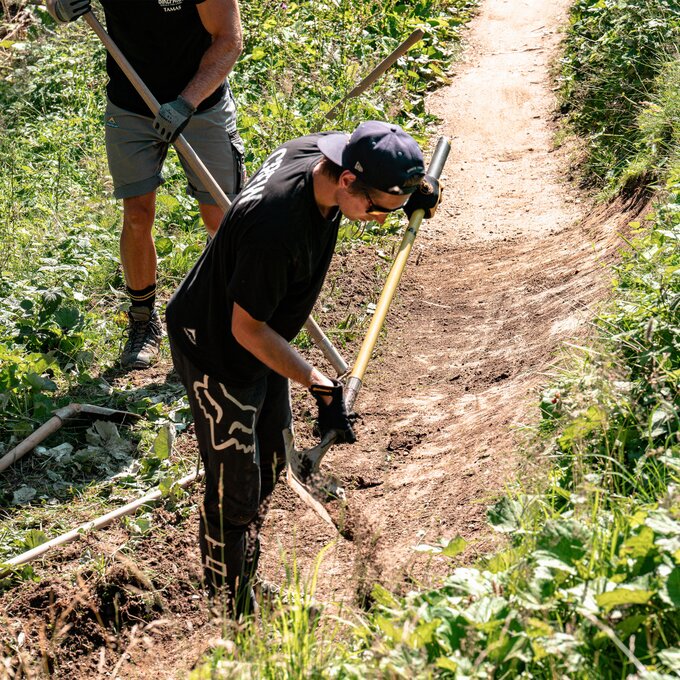 Das Shaper-Team ist mit Leidenschaft und Fachwissen bei der Arbeit, um euch Mountainbike-Fans unvergessliche Erlebnisse zu ermöglichen. Mit höchster Genauigkeit werden nicht nur die bestehenden Strecken gründlich inspiziert und optimiert, sondern auch mit Eifer an einem neuen aufregenden Trail gearbeitet. Hindernisse werden entfernt, Kurven geschärft und Sprünge geprüft, um den Flow und die Attraktivität der Trails zu maximieren. Es wird zudem fleißig geschraubt, geschmiert und geputzt, damit die Bikes für die actionreichen Fahrten bereit sind.