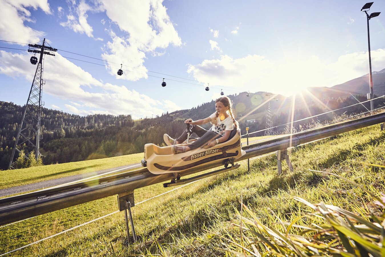 Eigentlich egal. Im Sommer-Funpark Fiss auf der Möseralm begeistern der Fisser Flitzer, der Fisser Flieger oder der Skyswing. Im Erlebnispark Hög in Serfaus sorgt die Sommerrodelbahn, der Familien Coaster Schneisenfeger für rasante Abfahrten und an der Bergstation des Sunliners startet der Serfauser Sauser.