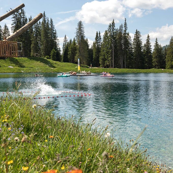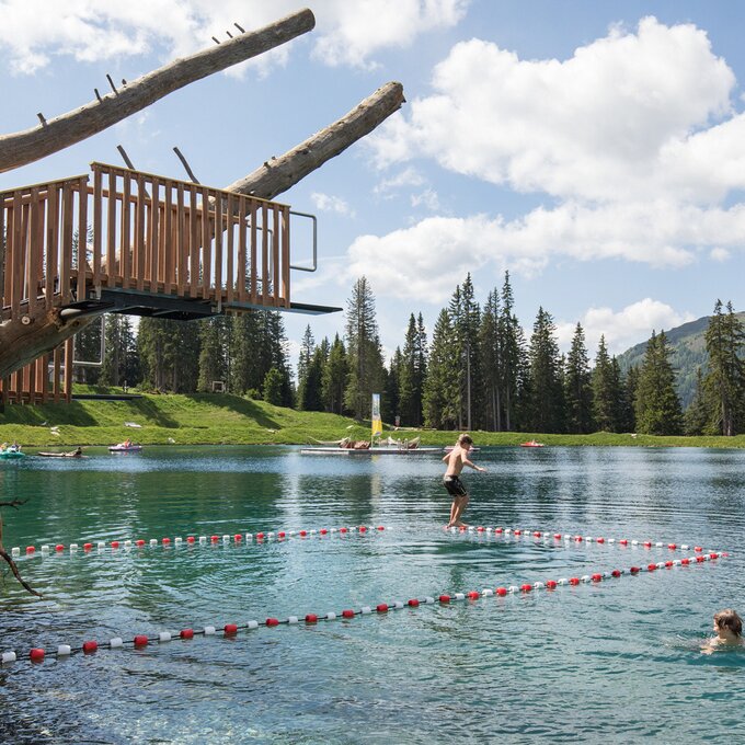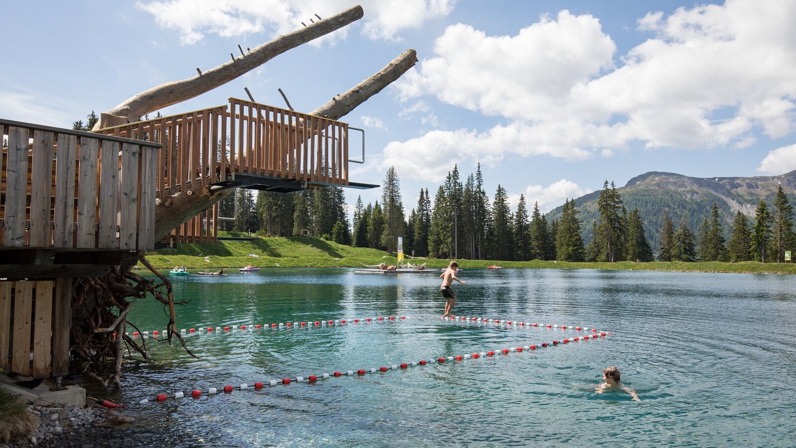 Was nicht fehlen darf, ist ein Sprung in den Högsee. An einem warmen Sommertag eine wohltuende Erfrischung für Groß und Klein. Der Högsee ist der erste Speicherteich Österreichs, welcher offiziell als Badesee genutzt werden darf. Im Sommer 2017 erreichte die Wassertemperatur immerhin stolze 23 Grad. Gar nicht so wenig, für einen Badesee, der auf 1.800 Metern Seehöhe liegt und nicht beheizt wird.