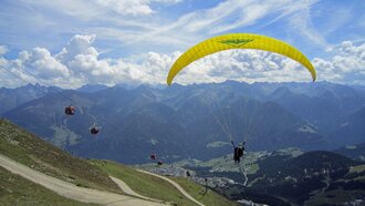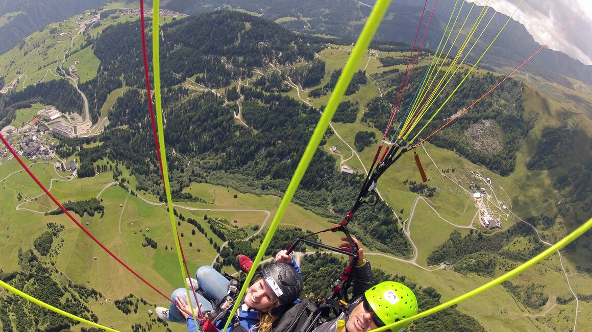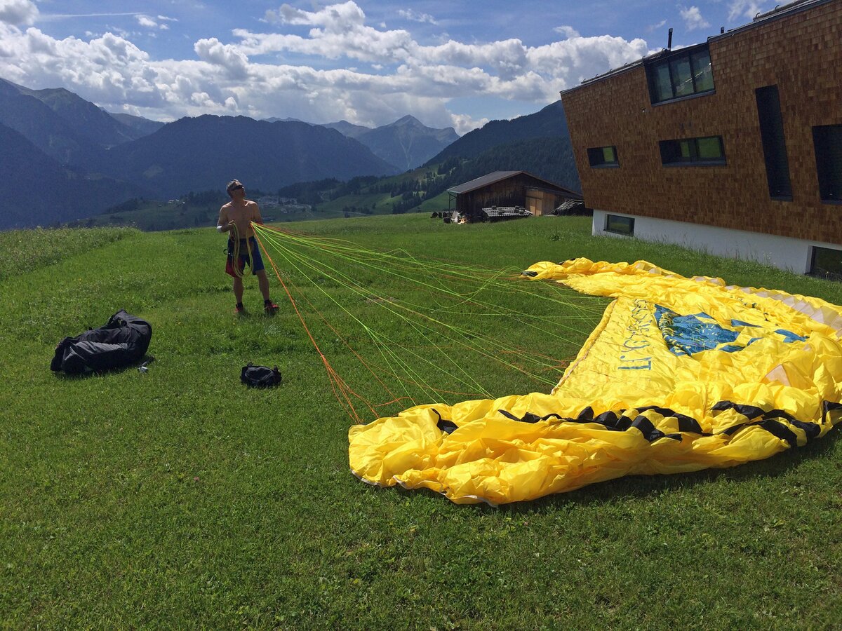 Alexandra: Als der Fluglehrer Roland vormittags anrief und uns sagte, dass an diesem Tag optimale Flugbedingungen herrschten und er noch 2 Plätze frei hätte, sagte ich sofort zu und die Vorfreude war sehr groß. Dennoch fing mein Herz an zu rasen und ich wurde sehr aufgeregt. Besonders als wir mit der Gondel zum „Abflugpunkt“ am Schönjoch in Fiss auf 2.436 m Seehöhe fuhren, gingen mir auf einmal tausend Gedanken durch den Kopf: Passt die Thermik? Hoffentlich kommt keine starke Windböe? Bin ich warm genug oder doch zu warm angezogen? Wird es mir tatsächlich Spaß machen? Kurzum: Wird alles gut gehen?