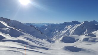 Ist der Bergrücken umrundet, geht es auf eine breite Piste die so richtig zum Carven und Genießen einlädt. Lange Schwünge, kurze Schwünge, alles ist möglich und man kann die Ski so richtig laufen lassen. Ziel der Abfahrt ist die Talstation der Masnerkopfbahn bzw. der Arrezjochbahn.