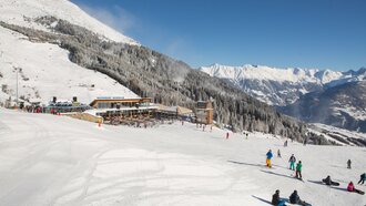 Um auf die Piste zu gelangen, fahren wir von Fiss aus mit der blauen Möseralmbahn nach oben. Vom Ausstieg weg, geht es direkt auf die Möseralmabfahrt. Wir starteten für unseren Clip beim Bergrestaurant Möseralm auf die rote Piste, welche eine Länge von knapp vier Kilometern misst. Die breite Piste lädt zum gemütlichen Carven ein und bietet im unteren Teil einen wunderschönen Blick auf das Dorf Fiss.