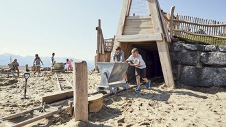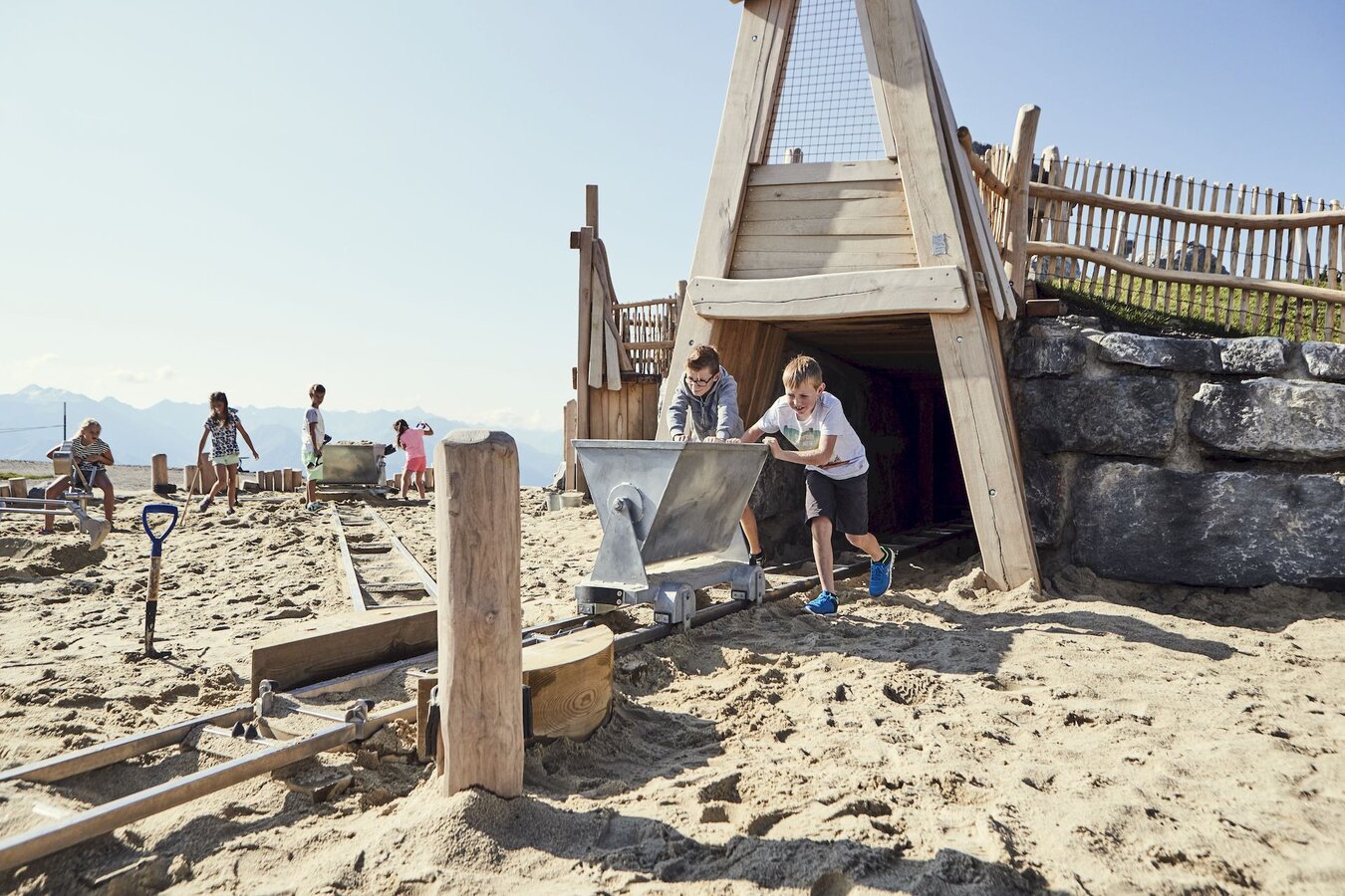 Sandburgen bauen ist Schnee von gestern! In SFL wird auf interaktiven Abenteuerspielplätzen in schwindelerregenden Höhen mit Schaufel und Co. nach Mineralien und Gold gebuddelt. Lust in einem stillgelegten Steinbruch Sand mit einem Karren zu bewegen? Dann auf zum Kinder-Bergwerk in Fiss!