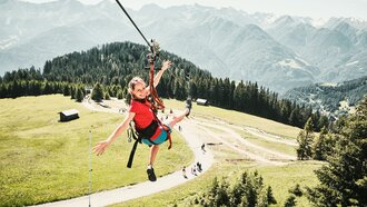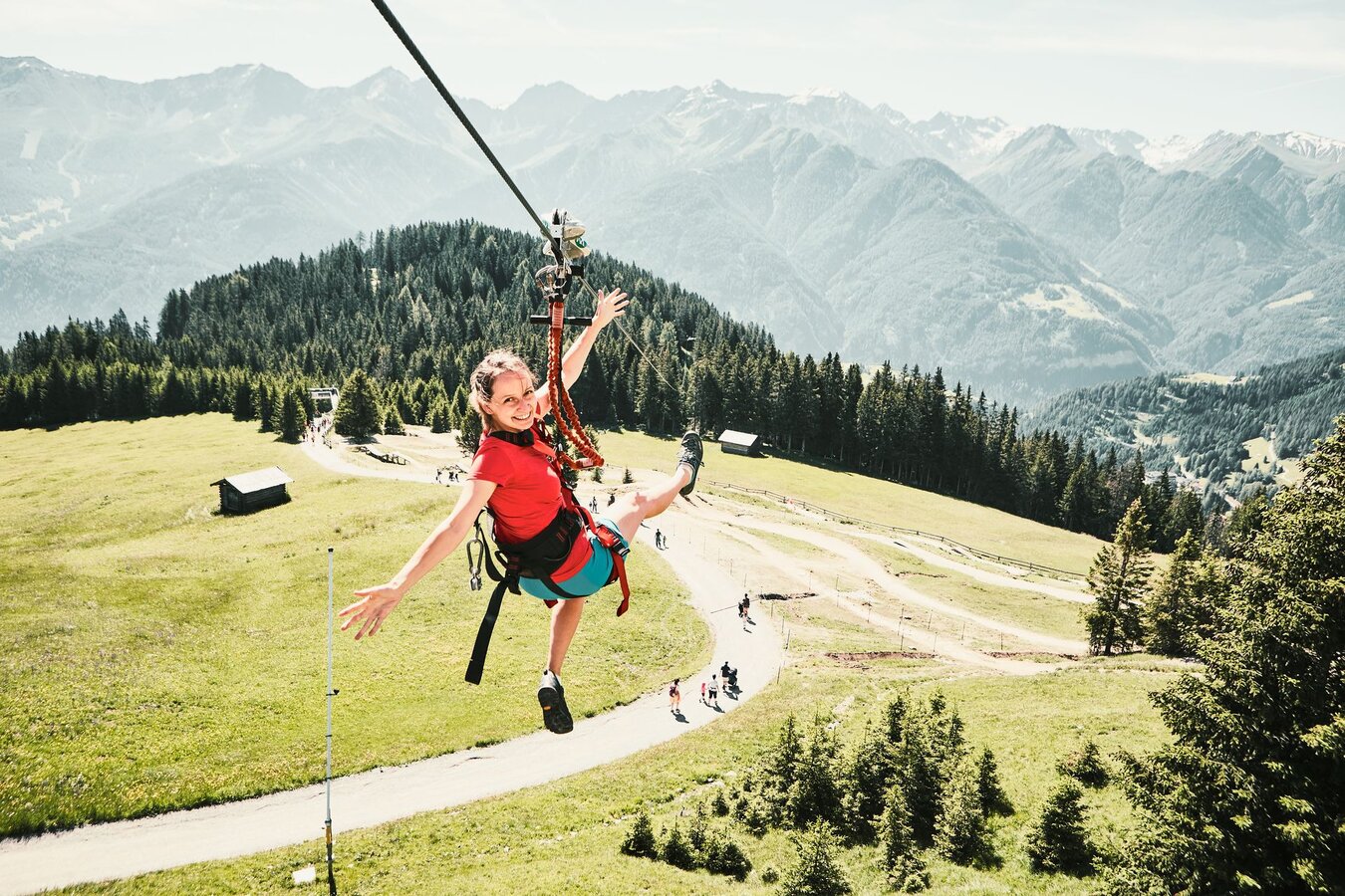 Schwindelfreiheit ist bei dieser Attraktion natürlich von Vorteil. Dennoch ist der Serfauser Sauser nicht nur für Eltern geeignet, auch größere Kids werden ihren Spaß daran finden. Je nach Gewicht ist der Flug nämlich auch gar nicht so rasant. Dafür sorgen die automatischen Bremsen. So kann die ganze Familie sicher einen berauschenden Tag genießen. Der Serfauser Sauser ist wirklich eine coole und familientaugliche Attraktion. We are family (action)! Auch im Nachbardorf im Sommer-Funpark Fiss wird für Adrenalinjunkies ziemlich viel geboten.