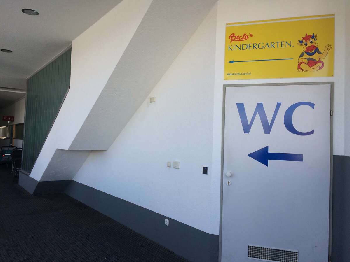Auch an der Talstation der Sonnenbahn in Ladis findest du in der Damen-Toilette eine Wickelmöglichkeit. Hinweis: Die Toilette im Untergeschoss ist nur über eine Treppe erreichbar.