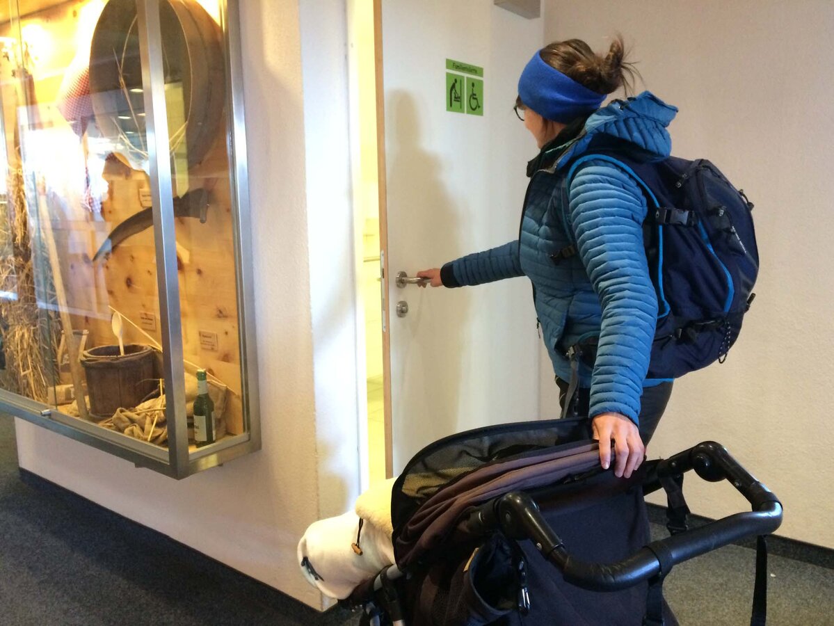 Nachdem der Kinderwagen die „Piste“ gemeistert hat, bittet die Schönjochbahn zum Einstieg via separatem Kinderwagen-Eingang. Das Wirtshaus Steinegg an der Mittelstation bietet sich ebenfalls an, mit dem Kinderwagen einen Winterausflug in die Berge zu machen. Der Weg zum Restaurant ist gut meisterbar. Wichtig: Um zur Familientoilette mit Wickeltisch (Damen-WC) zu gelangen, nimm den unteren Eingang, damit du nicht die lästige Treppe überwinden musst.