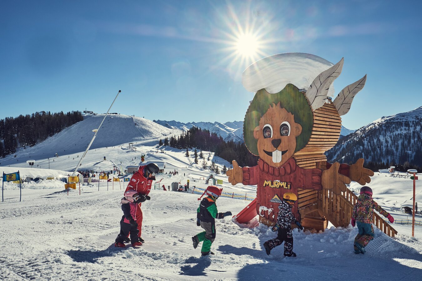 Im Winter tummeln sich auf der KINDERSCHNEEALM auf 2.000 m kleine Zwerge auf zwei Skiern. Spielerisch wird ihnen das Brettern beigebracht. Bist du schon mal vom Riesen-Murmli heruntergerutscht? Im Sommer regiert am Komperdell übrigens das Element (Murmli)WASSER. Ein Highlight ist das Murmeltiergehege. Hast du bereits einen pfeifenden Nager gesichtet?