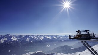 Die Aussichtsplattform am Masnerkopf, ist mit 2828m der höchste Punkt im Skigebiet. Nicht nur das einzigartige Panorama ist hier beeindruckend, sondern auch die imposante Bartgeier-Steinskulptur von einem einheimischen Künstler. Ein Erlebnis-Fernrohr sorgt zudem dafür, dass die umliegende Bergwelt genau unter die Lupe genommen werden kann. Mit dieser Plattform ist unser Skigebiet wieder um ein imposantes Highlight reicher geworden.