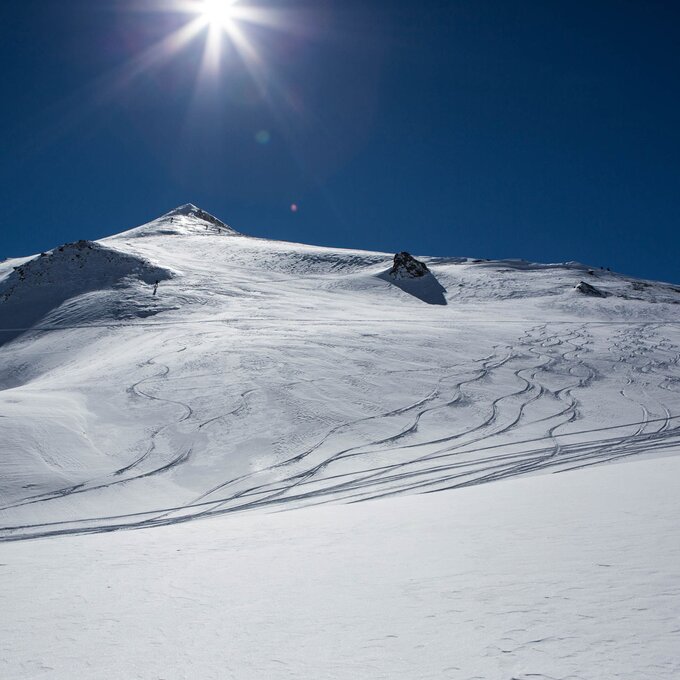 Die Abfahrt lässt das Herz eines jeden Skifahrers höher schlagen, denn es erwartet einen nicht nur eine lange und breite Piste, sondern auch ein imposantes Bergpanorama!
