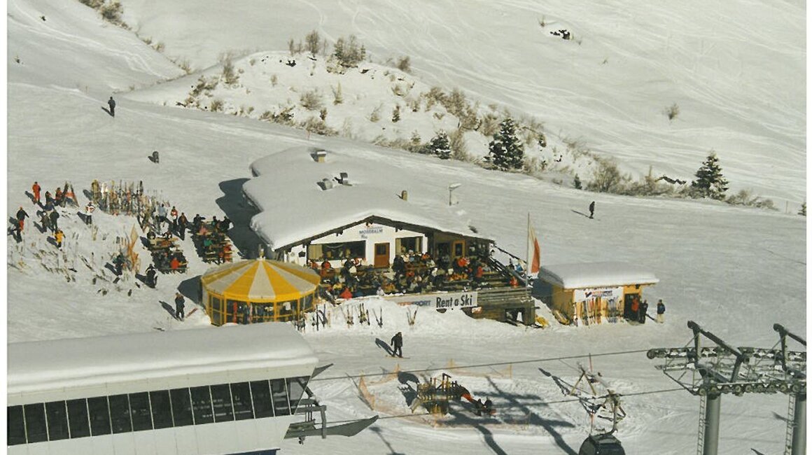 Nach dem ersten Winter von Serfaus-Fiss-Ladis wurde in weitere QUALITÄTSVERBESSERUNGEN im Skigebiet investiert. Auch die GASTRONOMIEBETRIEBE bekamen ein Face-Lifting. Blick auf Fiss: 1969 wurde auf der MÖSERALM eine kleine Jausenstation errichtet. Im Jahre 2000 hatte diese schließlich ausgedient und es entstand ein modernes Bergrestaurant mit Selbstbedienung.