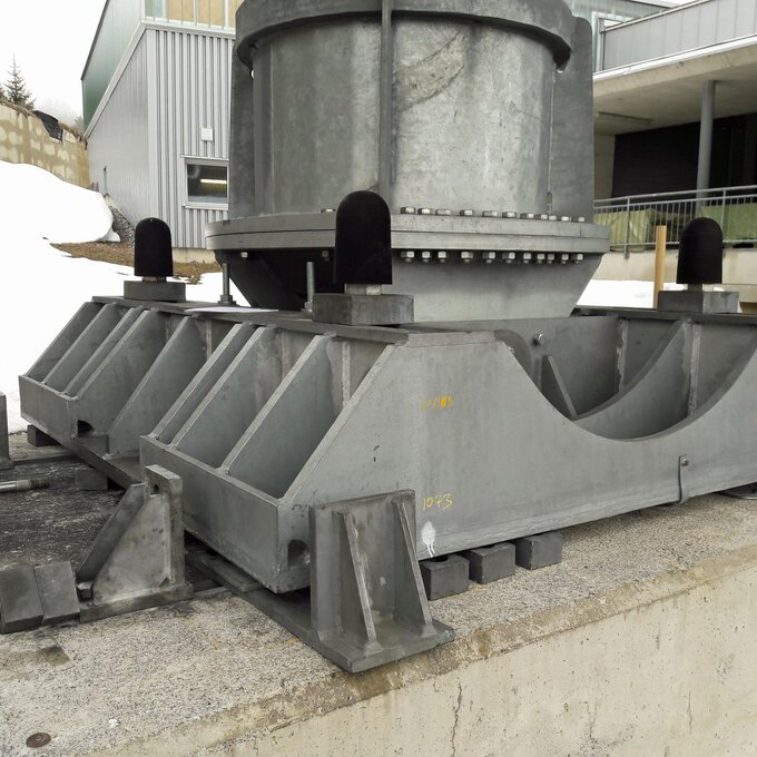 Auch die Stützen wurden ins Lot gebracht. Die erste Stütze Richtung Bergstation wurde erfolgreich um 100 Millimeter verschoben. Interessant: Die Stützen können in allen Richtungen manövriert werden. Eine technische Meisterleistung mit der den Untergrundbewegungen erfolgreich getrotzt wird.