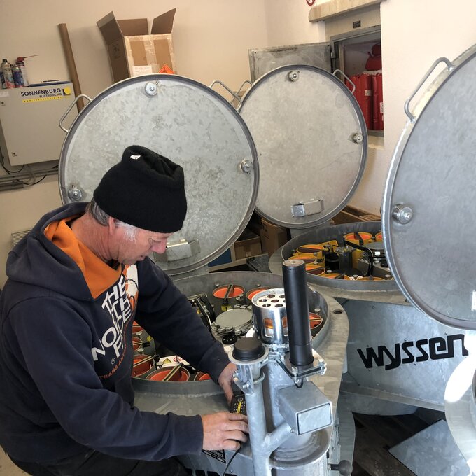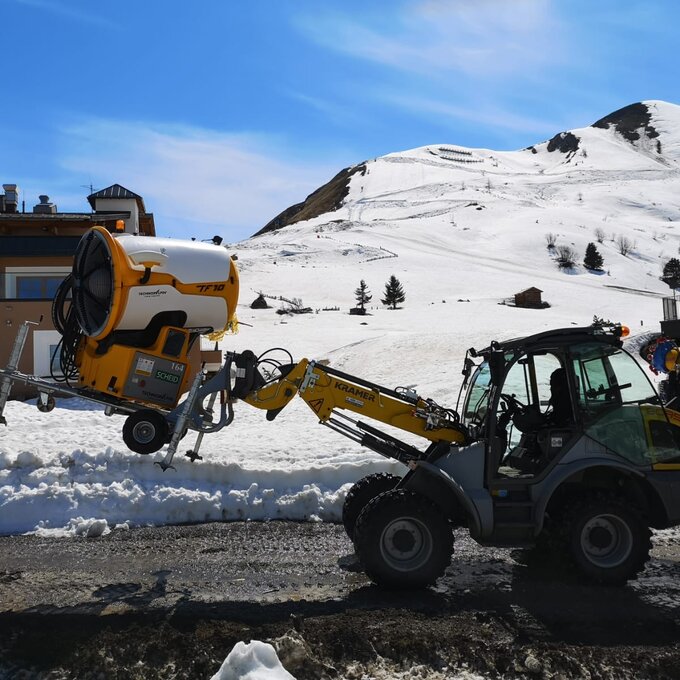 Genügend Schnee spielt sowohl für die Funparks als auch für unsere Pisten eine wesentliche Rolle. Am Ende der Sommersaison sind mir einige Turmkanonen für die Beschneiung aufgefallen. Nun kann ich endlich nachfragen, wo diese eigentlich übersommert haben. Heinrich erklärt mir, dass diese, während dem Sommer abgedeckt werden. Etwaige Reparaturen werden direkt in den hauseigenen Werkstätten durchgeführt. Der richtige Umgang mit den Schneekanonen ist sehr wichtig, immerhin kostet ein einzelnes Beschneiungsgerät stattliche 28.000 €.