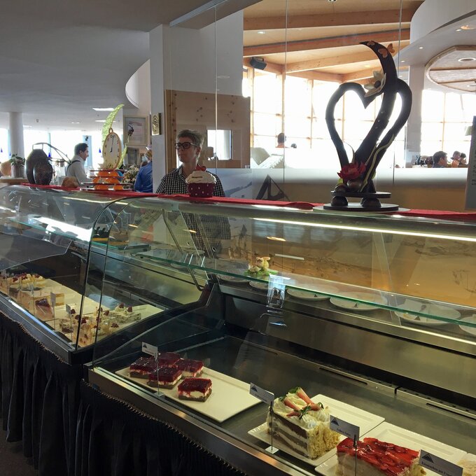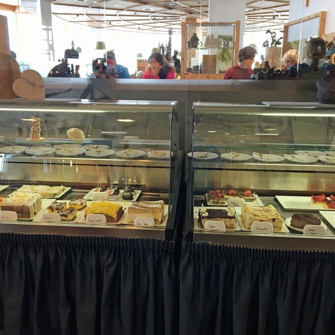 Nach dem Besuch der Werkstätte fuhren wir mit der Schönjochbahn hoch auf den Berg. Die Schönjochbahn ist eine der modernsten Gondelbahnen, da sie in der Mittelstation getrennt werden kann.