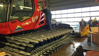 Weiter ging es zur betriebseigenen Schlosserei, wo wir Schlossermeister Wolfgang über die Schulter schauen durften. Alles was möglich ist, wird in der eigenen Werkstatt selbst hergestellt bzw. repariert. Hauseigene Mechaniker und Schlosser sorgen dafür, dass defekte Maschinen, Skiständer und vieles weitere schnellstmöglich wieder einsatzbereit sind.