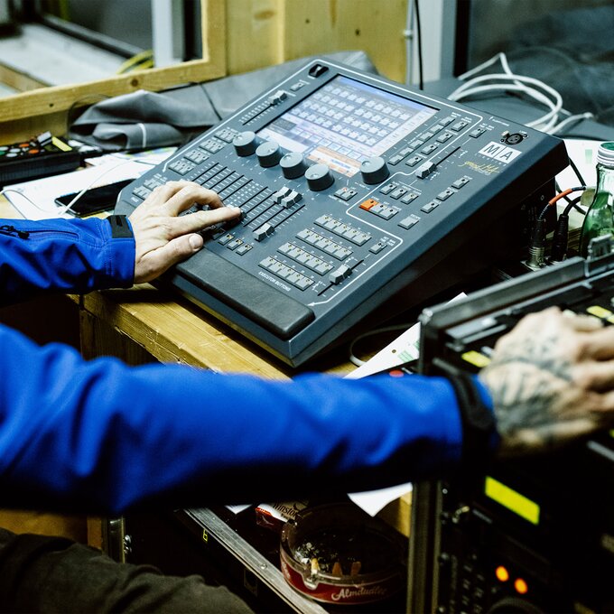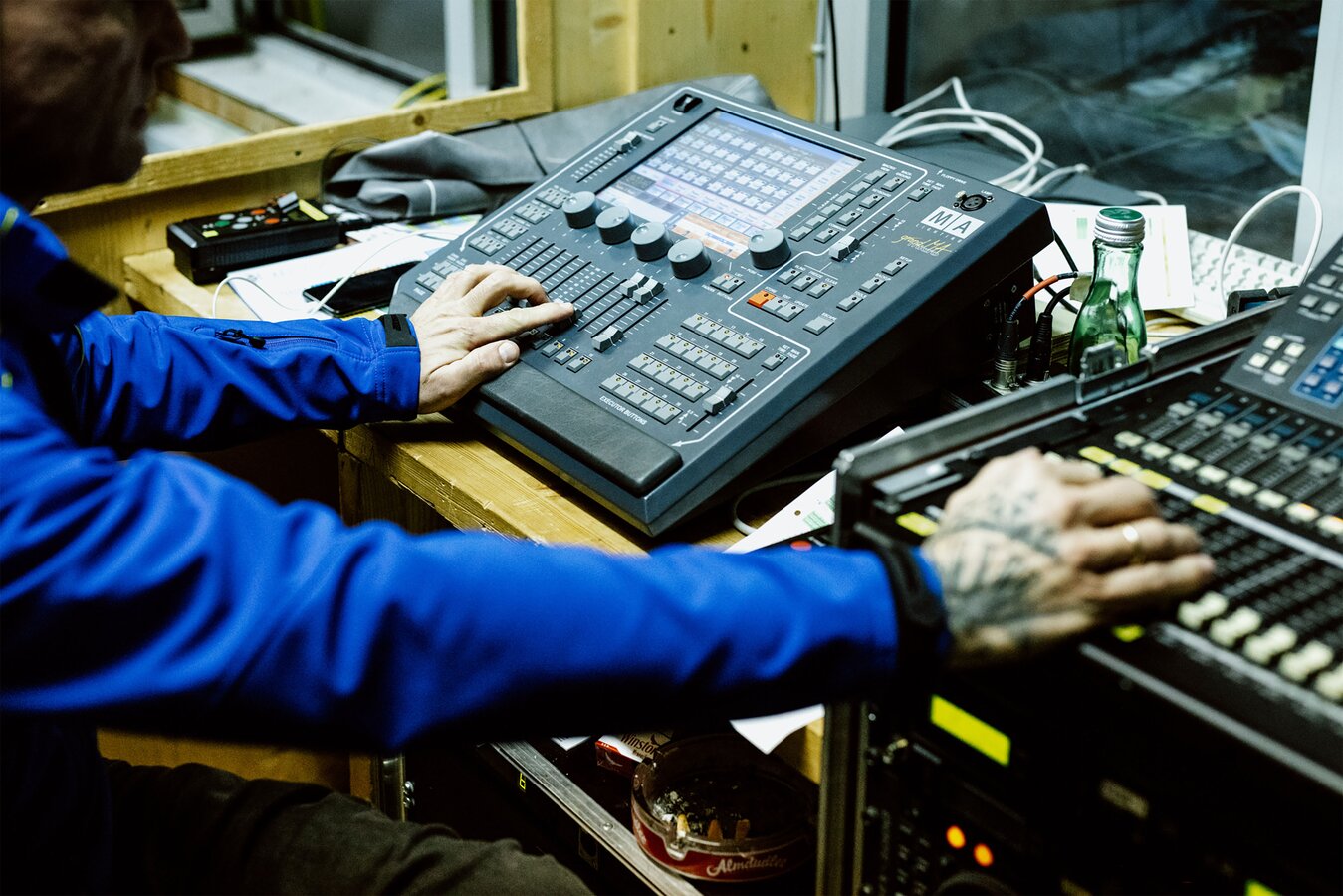 Im Technikraum haben mittlerweile auch die anderen aus Alfons‘ Team Platz genommen. Unter ihnen ist Wolfgang Timischl, genannt Wolfi. Er steuert das DMX-Pult und ist seit 19 Jahren dabei. Gibt’s da noch Stress und Aufregung vor den Shows? „Vor der ersten Show auf jeden Fall!“, sagt Wolfi. „Der erste Abend ist der wichtigste in der Saison, wenn der gut läuft, ist der gesamte Winter für uns gerettet“, ergänzt Alfons. Das heißt aber nicht, dass nach der überstandenen Premiere immer alles glatt läuft: Erst vor zwei Wochen sei der „worst case“ eingetreten, das DMX-Pult habe kurz vor einer Show nicht mehr funktioniert, erzählt Wolfi. „Da entsteht dann schon Hektik“, sagt Alfons. „Meist geht aber alles gut und dann machts auch Spaß!“