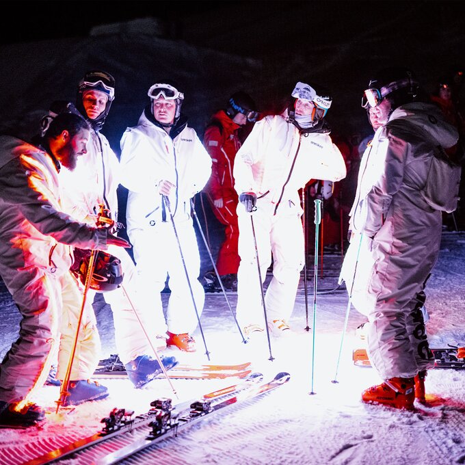 Je näher der Start der Show rückt, desto mehr Teilnehmer und Mitarbeiter trudeln ein. Insgesamt 20 Personen aus dem Bergbahnen-Team, das Springer-Team von Goffi Gram, die Fahrer von fünf Pistengeräten und 70 bis 80 Skilehrer der Skischule Serfaus sind bei jeder Adventure Night im Einsatz. Dazu kommen die Mitarbeiter von Show Express bei der Vorbereitung und weitere externe Partner wie etwa ein Akrobatenteam, das der Show das ganz besondere Extra verleiht. Was das genau heißt? Eine Tuchakrobatin bildet heuer einen der Höhepunkte der Show! Gekonnt schwebt sie über der Bühne und sorgt mit gewagten Kunststücken für ungläubiges Staunen unter den Zusehern.