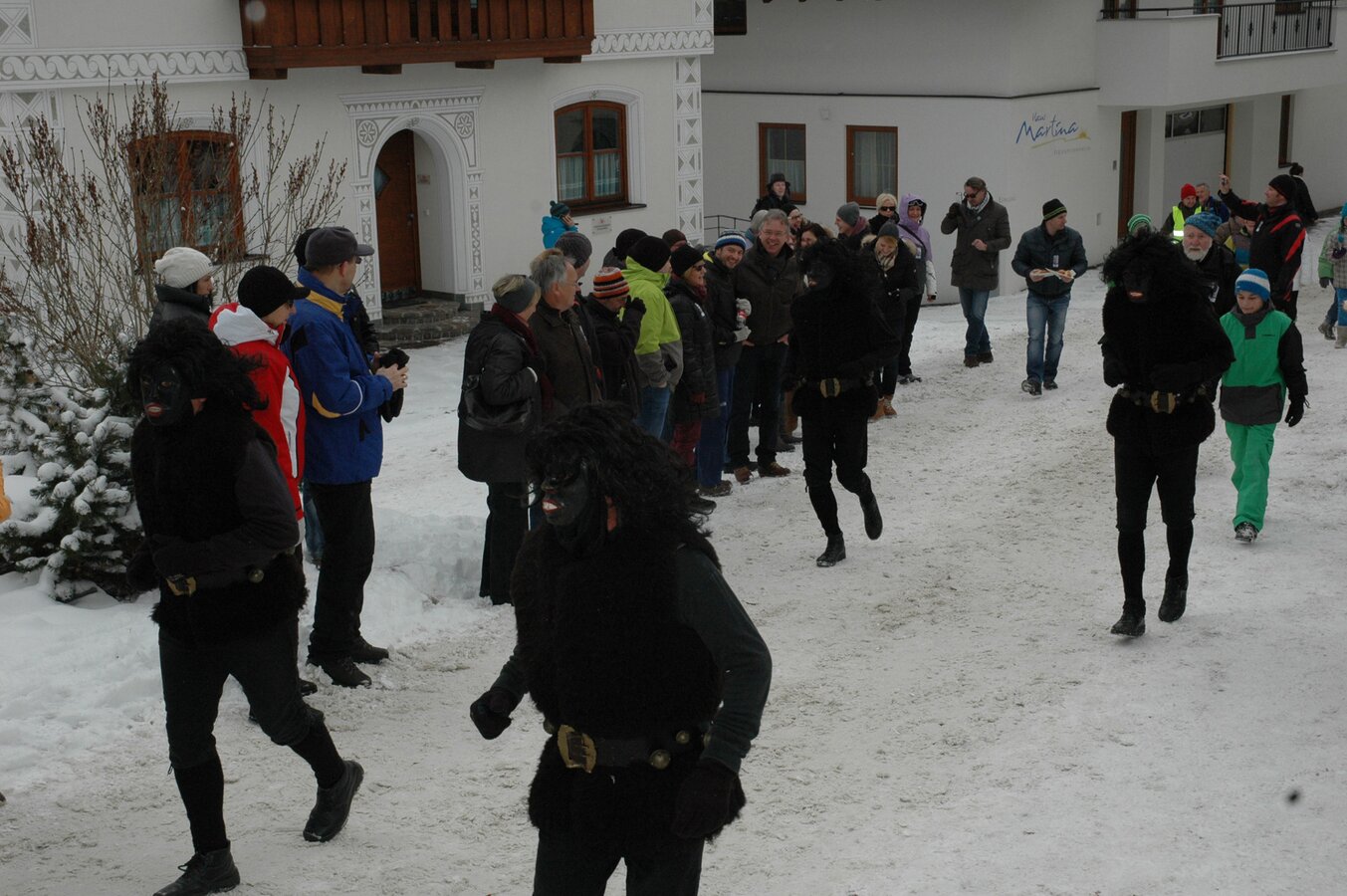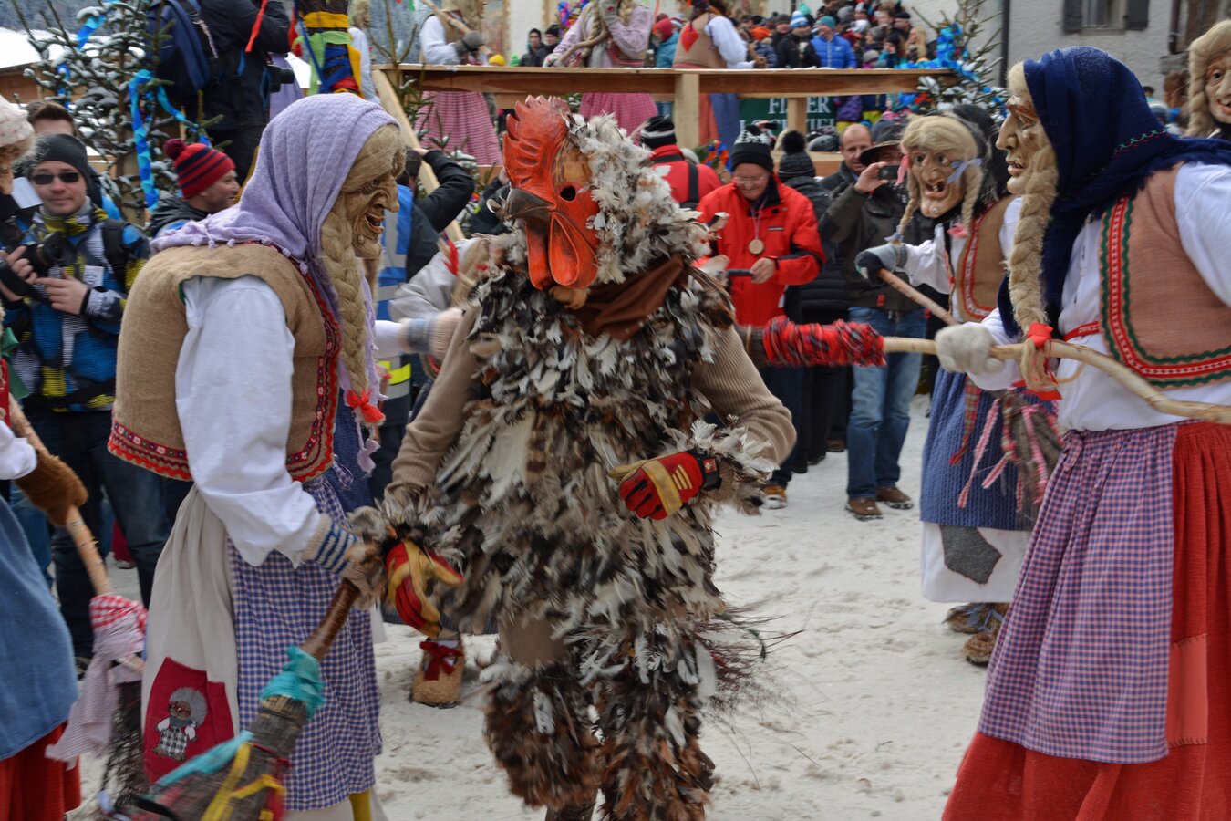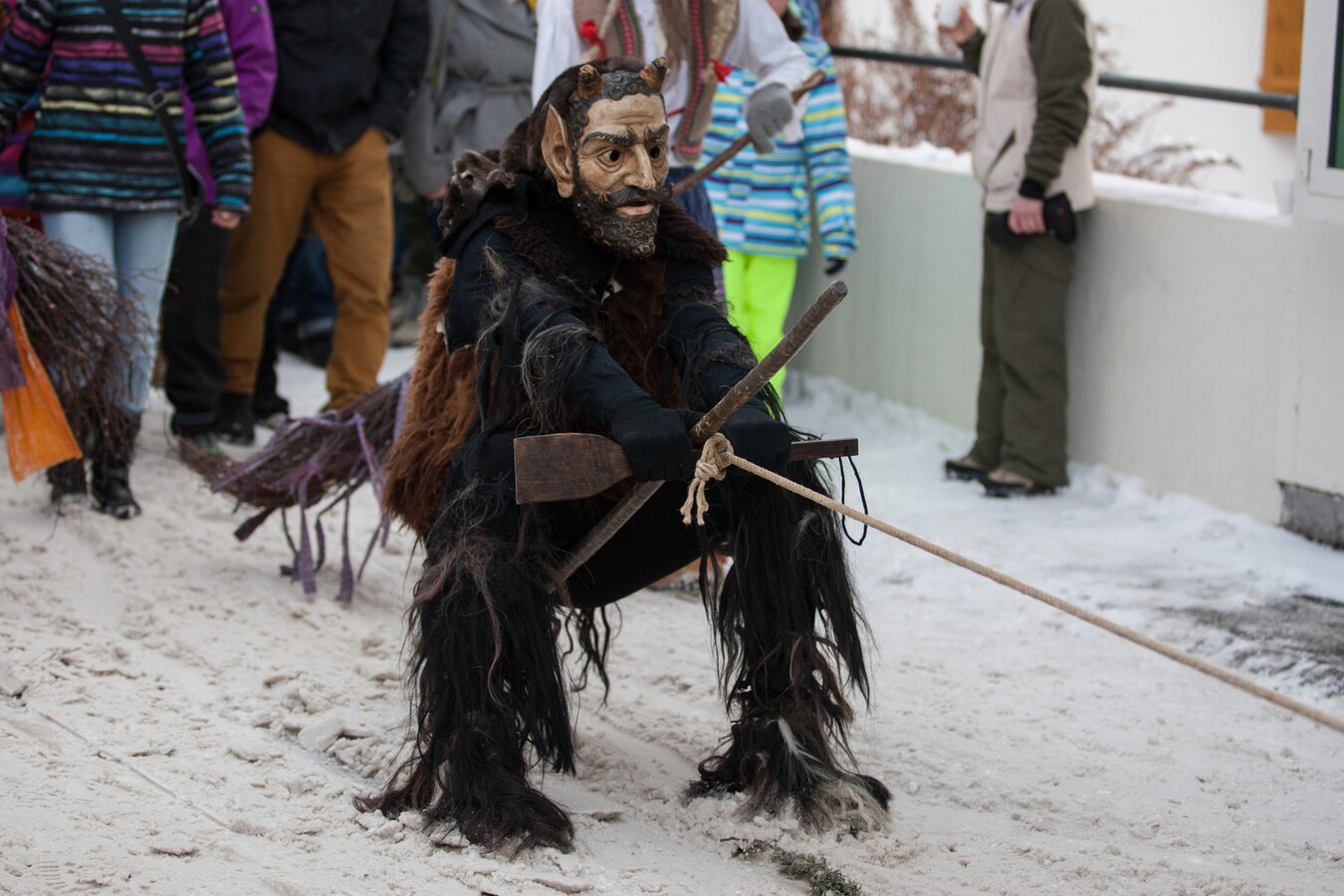 Sie repräsentieren auch den Winter, der den Menschen früher sehr zu schaffen machte. Sie machen mit Geschrei und schwingenden Besen Platz für die nachfolgenden Teilnehmer, tanzen zu der Musik und drängen die Zuseher zurück.