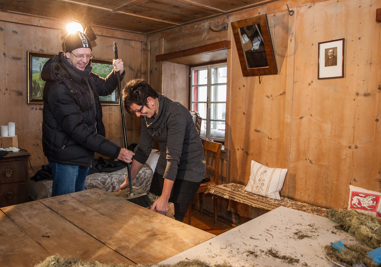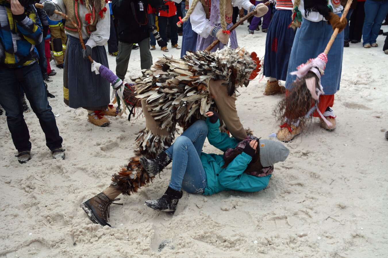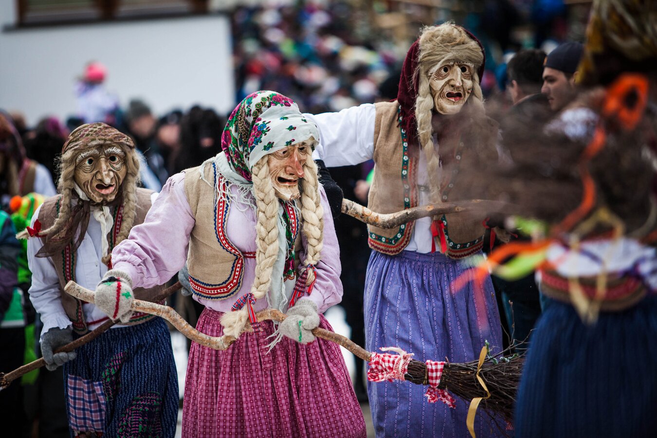 Sie repräsentieren auch den Winter, der den Menschen früher sehr zu schaffen machte. Sie machen mit Geschrei und schwingenden Besen Platz für die nachfolgenden Teilnehmer, tanzen zu der Musik und drängen die Zuseher zurück.
