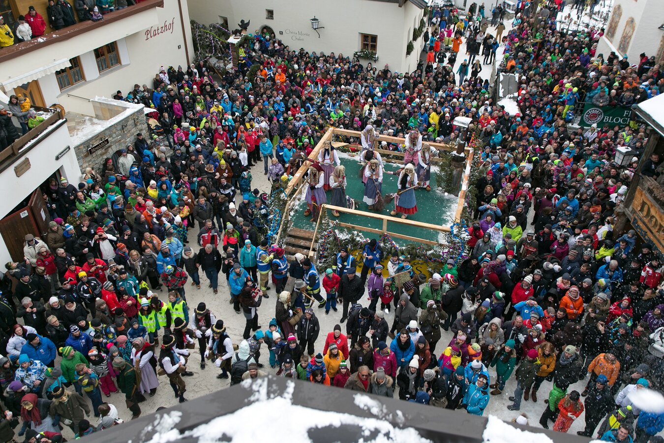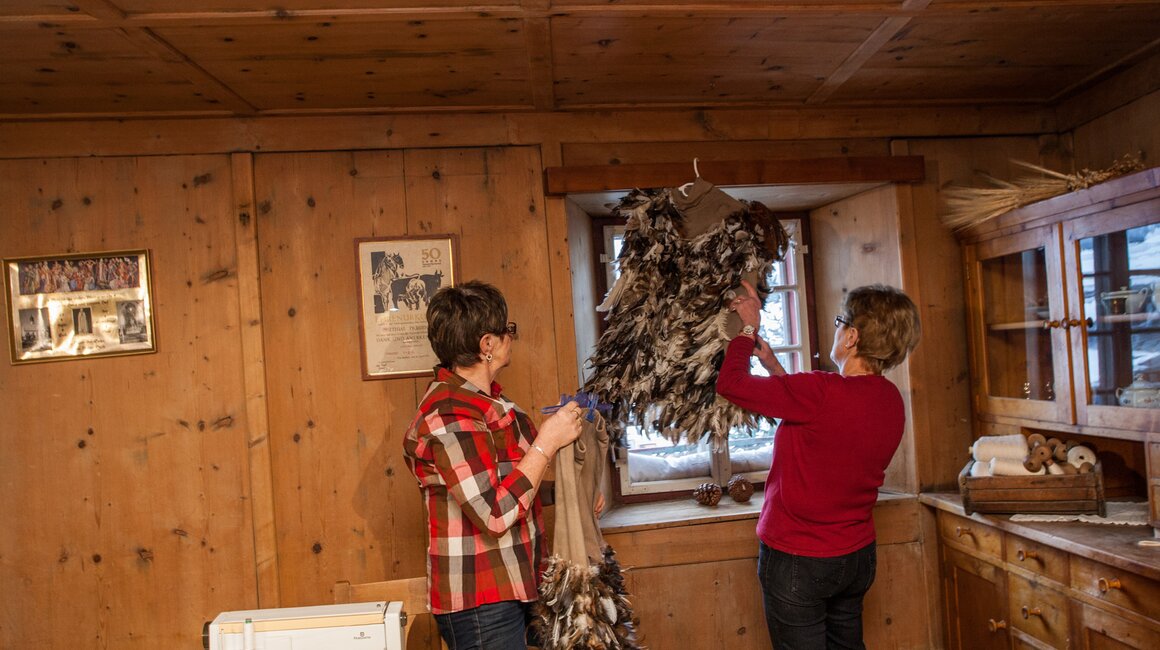 Auch dem Bajatzl wird beim Fisser Blochziehen so einiges an körperlicher Leistung abverlangt. Eine gute Vorbereitung, gute Kondition und Koordination sowie Trittsicherheit und Mut sind Voraussetzungen, um diese Rolle bestmöglich zu verkörpern.