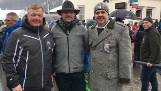 Der Fisser Bürgermeister Markus Pale (rechts im Bild) ist schon ein echter Profi in Sachen Blochbaumversteigerung und hat wieder einmal alles gegeben. So konnte der Bloch beim heurigen Kinderblochziehen für die stolze Summe von 6.300 Euro versteigert werden.