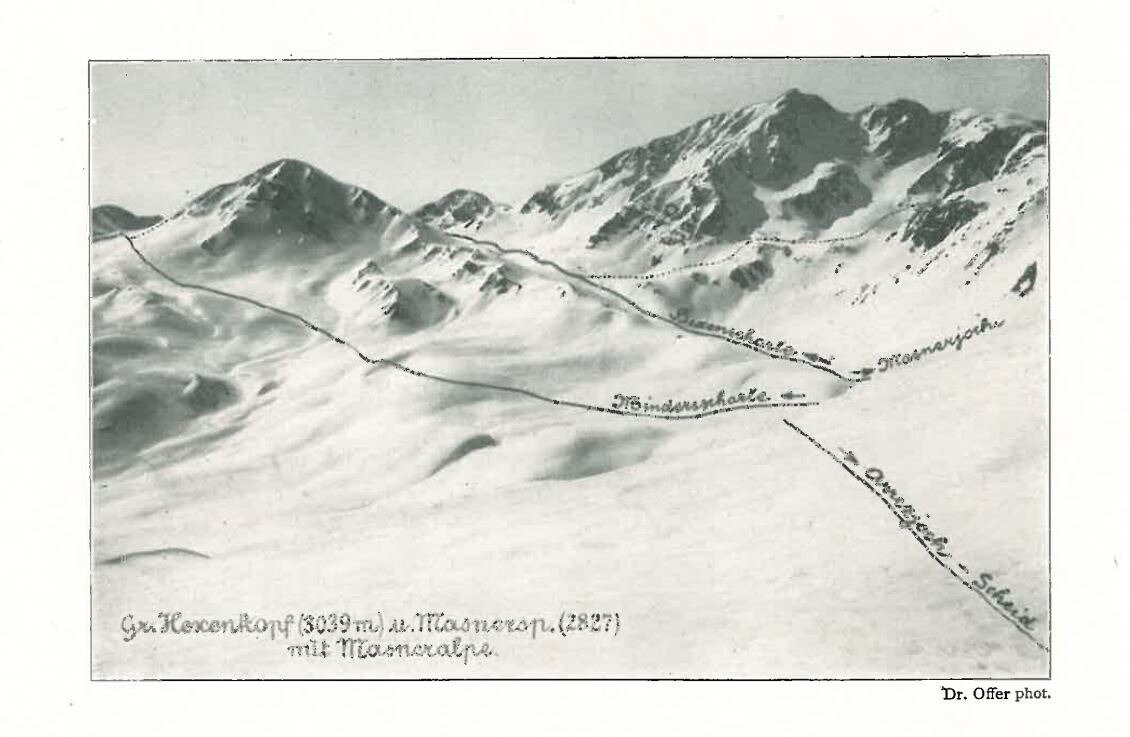 Vor mir liegt eine mehr als 100 Jahre alte SKITOURENKARTE im Maßstab 1:50.000. Sie gehört ebenfalls zum Büchlein. Könntest du mit der Karte etwas anfangen? Gar nicht so einfach, oder? Da sind die Pistenpläne von heute doch etwas gewohnter.