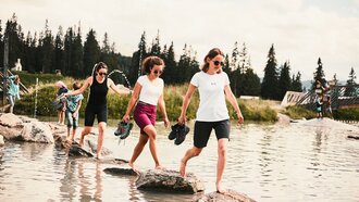 Er ist ein Eislaufplatz im Winter. Neben dem Schlossweiher in Ladis können Eisprinzessinnen und Eisprinzen auch in Serfaus ihre Pirouetten drehen. Von der Sonnenterrasse des direkt am Ufer gelegenen Restaurants Seealm Hög können die Nachwuchstalente am Eis genussvoll beobachtet werden.