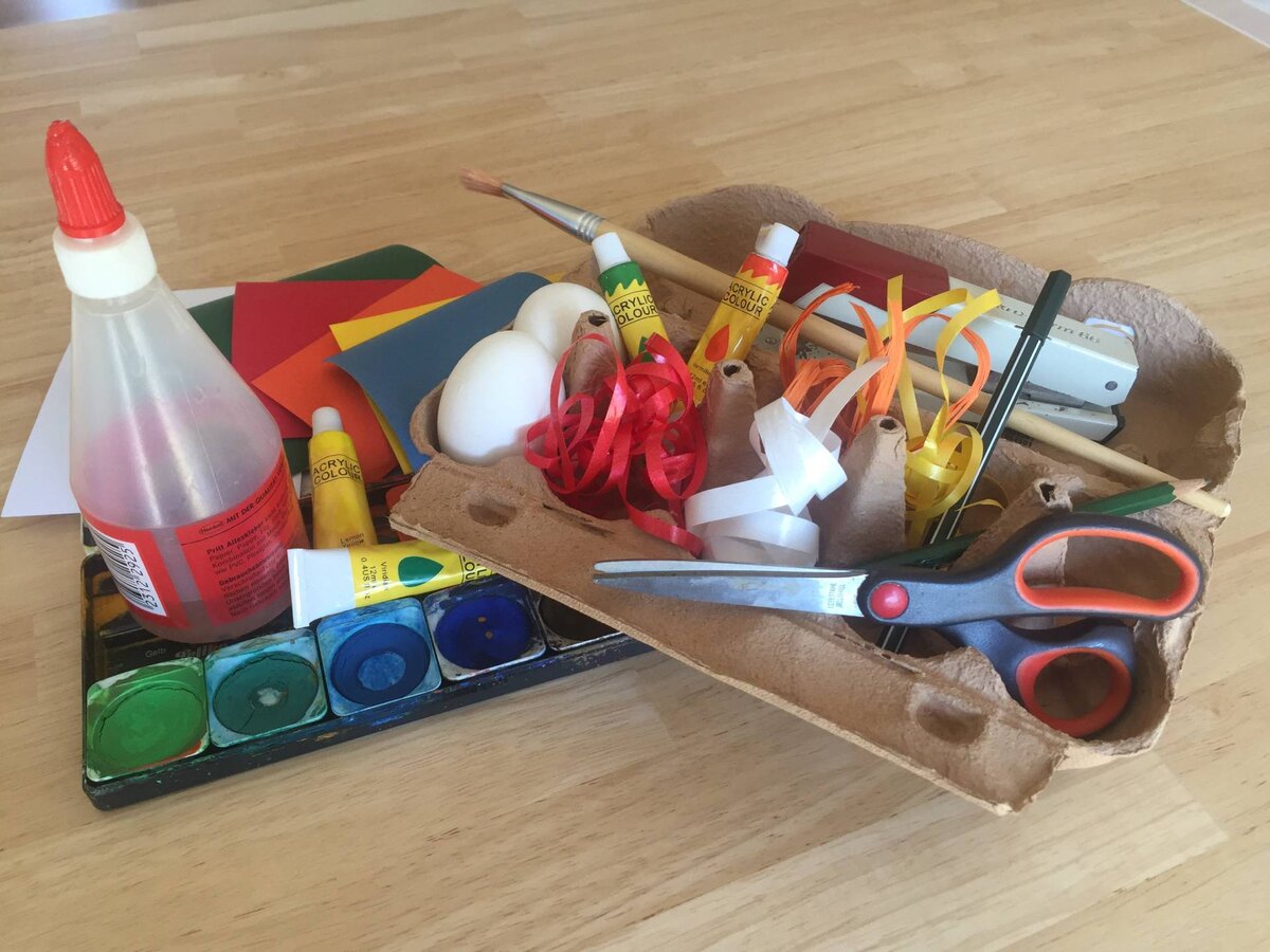 Wer möchte, kann seine Eierschachteln nun auch noch mit Pinsel und Farbe bunt bemalen. Entweder mit Wasserfarbe oder Acrylfarbe. Der Kreativität sind keine Grenzen gesetzt!