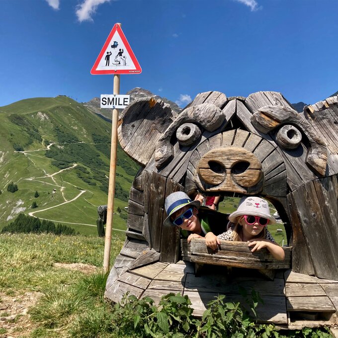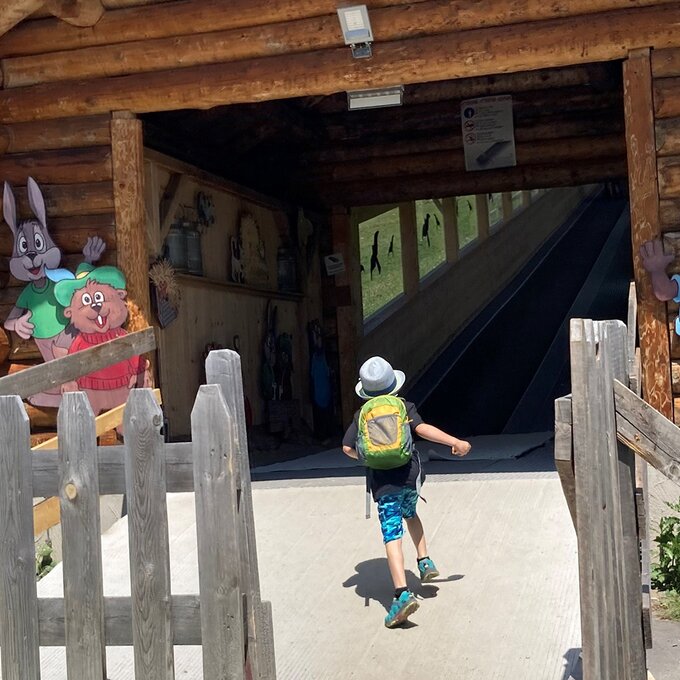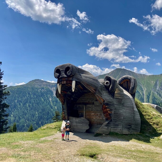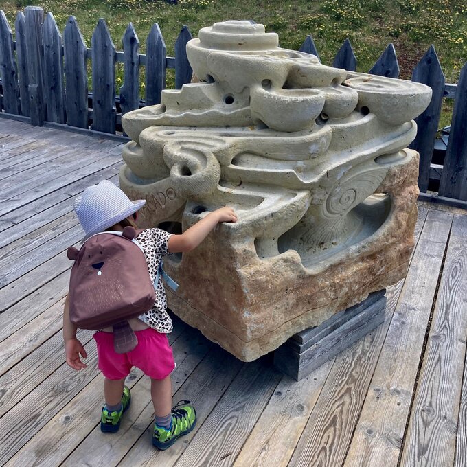 Hier dreht sich alles um Gesteine, Mineralien und Fossilien – faszinierende Zeugnisse der geologischen Vergangenheit der Alpen. Ausgestattet mit Schaufel und Bürste begaben sich die beiden auf eine aufregende Expedition durch das Gebiet der archäologischen Ausgrabungen. Spaß, Spannung und jede Menge Wissen zum Mitnehmen wird hier garantiert. Besonders beeindruckt war ich davon, wie motiviert die dreijährige Sophia den Motoriktrail mehrmals nutzte. Die Relaxstationen rund um das Georama bieten die perfekte Gelegenheit für eine kurze Pause, während man seinen Kindern beim Spielen zusehen kann. Ein weiteres Highlight sind die kunstvoll gemeiselten Kugelbahnen aus Stein. Die Kinder verfolgten hier begeistert, wie die Kugeln kreuz und quer entlang der Bahnen sausten.