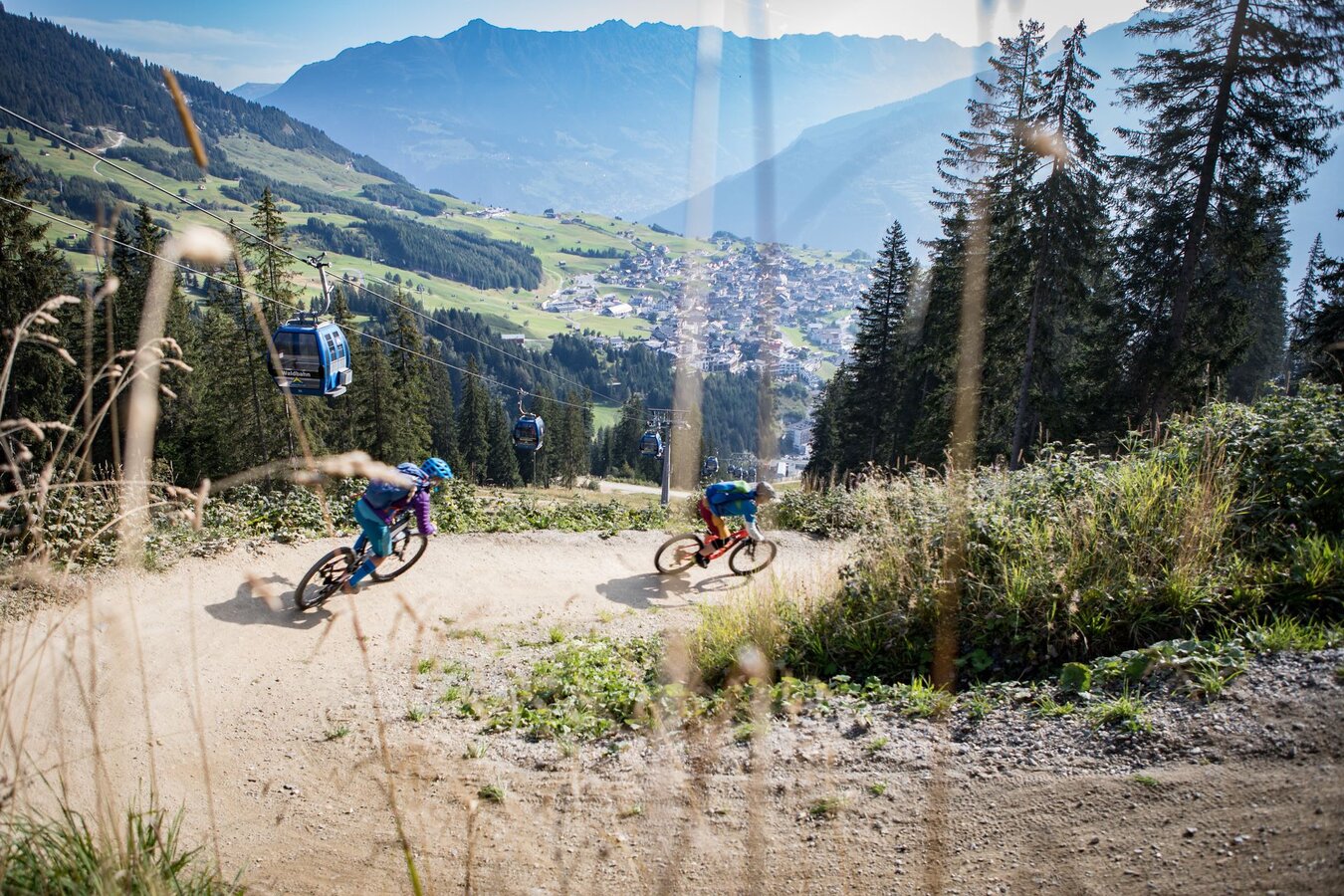 Als wir in Serfaus-Fiss-Ladis eintrudeln, sind Johannes und Matthäus kaum zu bändigen. Auch Mama und Papa freuen sich natürlich schon riesig auf den gemeinsamen Biketag in der Familienregion. Mit erwartungsvollen, grinsenden Gesichtern schreiten, genauer gesagt rollen wir in Richtung Talstation der Waldbahn in Fiss. Dort befindet sich nämlich ein wahres Paradies für Windelbiker als auch Bikeprofis: der Bikepark Serfaus-Fiss-Ladis. Auch wenn ich meinen Jungs (noch) das Wasser reichen kann, bin ich immer wieder fasziniert von ihrer Begeisterungsfähigkeit zum Zweiradsport. Da muss Papa schon anständig in die Pedale treten.