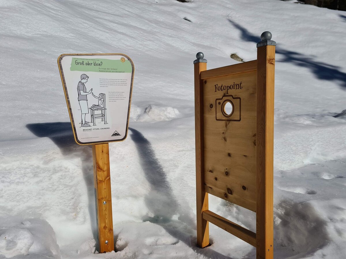 Beim FOTOPOINT wird dem Besucher ein Streich gespielt. Leider will der kleine Abenteurer nicht seine tolle Rodel wechseln und auf der anderen Platz nehmen. Und so bleibt uns heute die optische Täuschung mit Zwergen und Riesen leider verborgen. Beim nächsten Mal klappt's bestimmt.