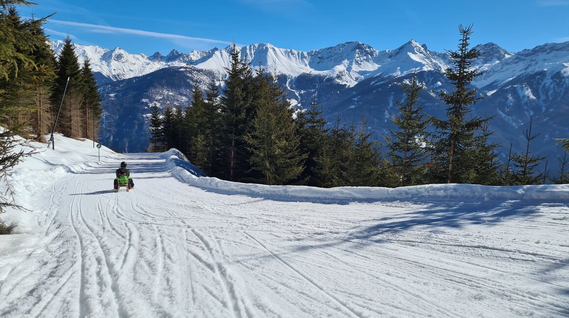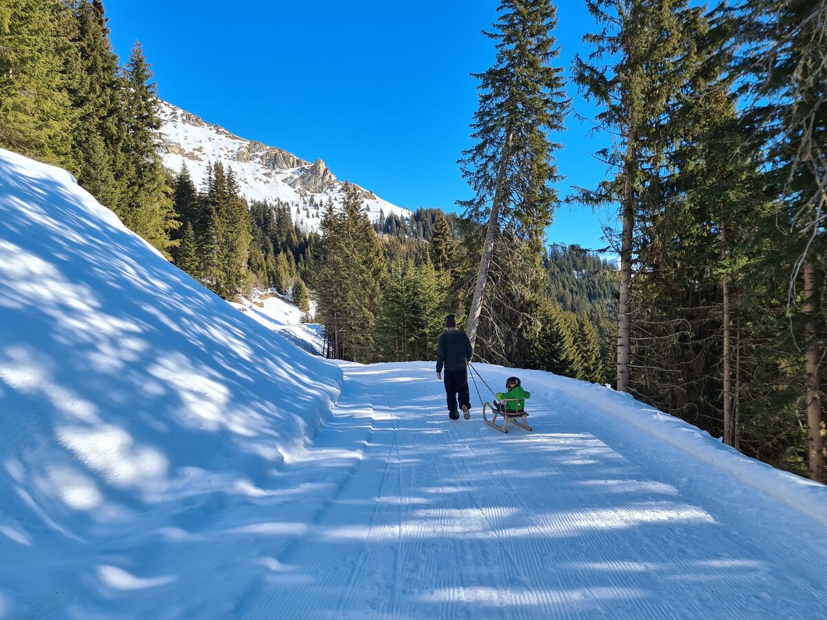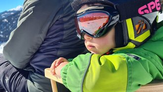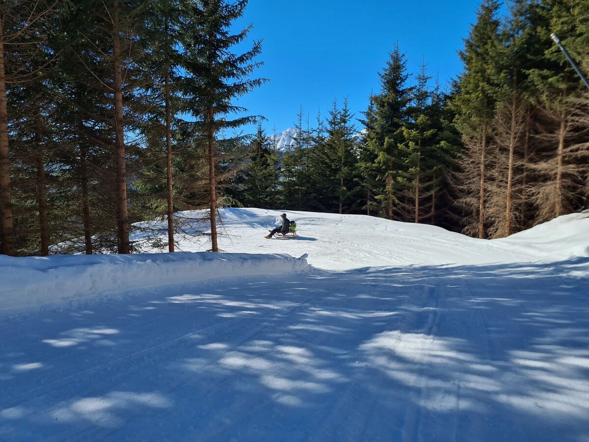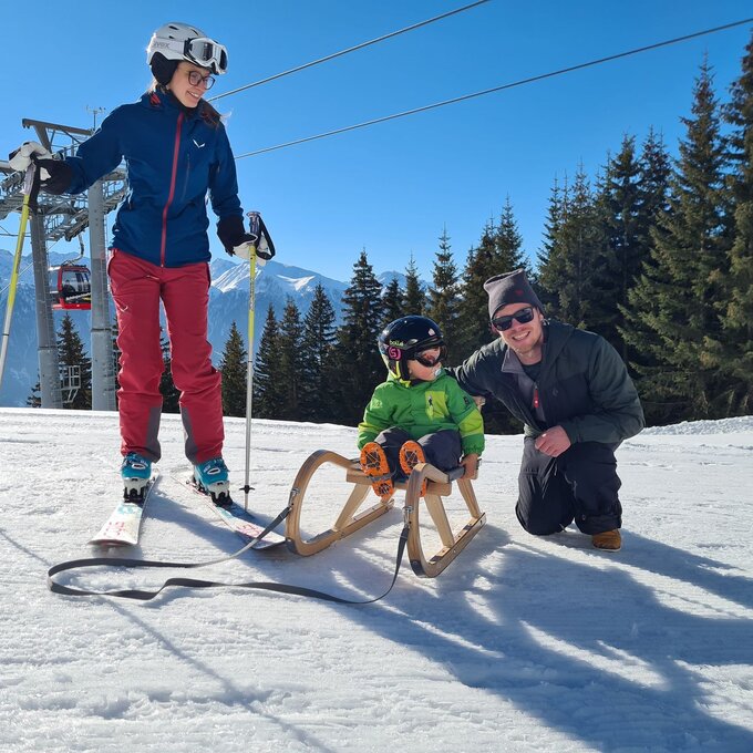 Dieser Themenweg ist sehr EMPFEHLENSWERT. Er ist breit angelegt und leicht zu erkunden, da er nur leicht abfallend ist. Damit beim Wandern auch bei größeren Kids keine Langweile aufkommt, bieten die Stationen, die den Sinnen einen Streich spielen, genügend Raum für Abenteuer. Hast du so einen kleinen Zwerg wie ich dabei? Dann nimm am besten eine Rodel mit, da besonders die kleinen Weltentdecker gerne schnell müde werden. Für Abwechslung sorgt die Möglichkeit, am Ende auf der Rodelbahn Fiss ins Tal zu gelangen. Auch im Sommer lädt der Fisser Kraft- und Sinnesweg zu einer interaktiven Familienwanderung ein und ist sogar mit Kinderwagen erlebbar. Was wohl Konstantins Lieblingsfarbe beim Wandern ist? SCHNEEWEISS oder doch WIESENGRÜN?